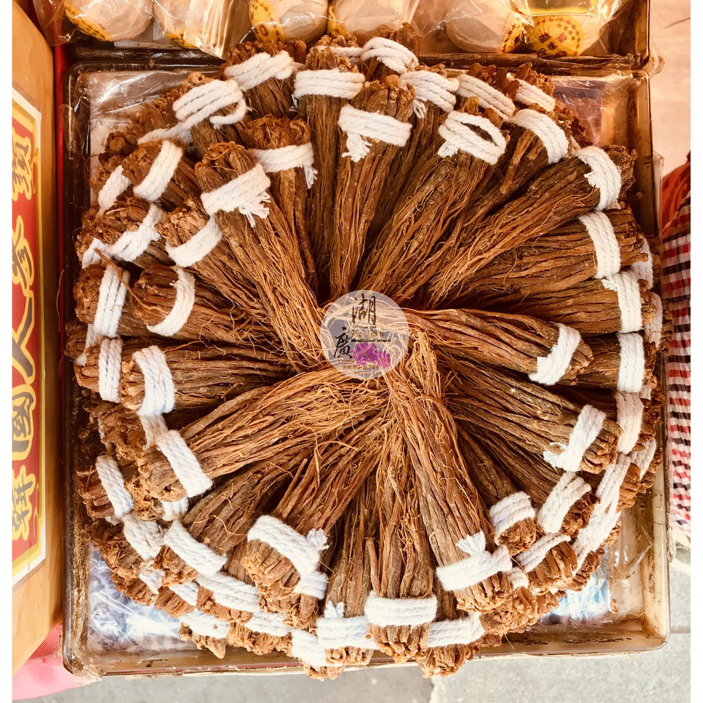 來賣,你仔細觀察一下,很多參鬚上還帶著人參頭,他其實是貨真價實的六年小人參,參雜著大參鬚再一起販售喔,