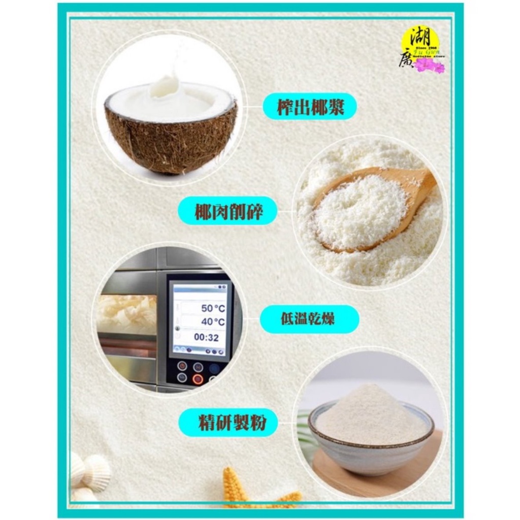 椰子麵粉 ,他是取 椰子果實 就是椰子, 取出椰子果肉,壓榨出椰漿,榨乾的椰子肉削絲後,再經過低溫烘乾後,