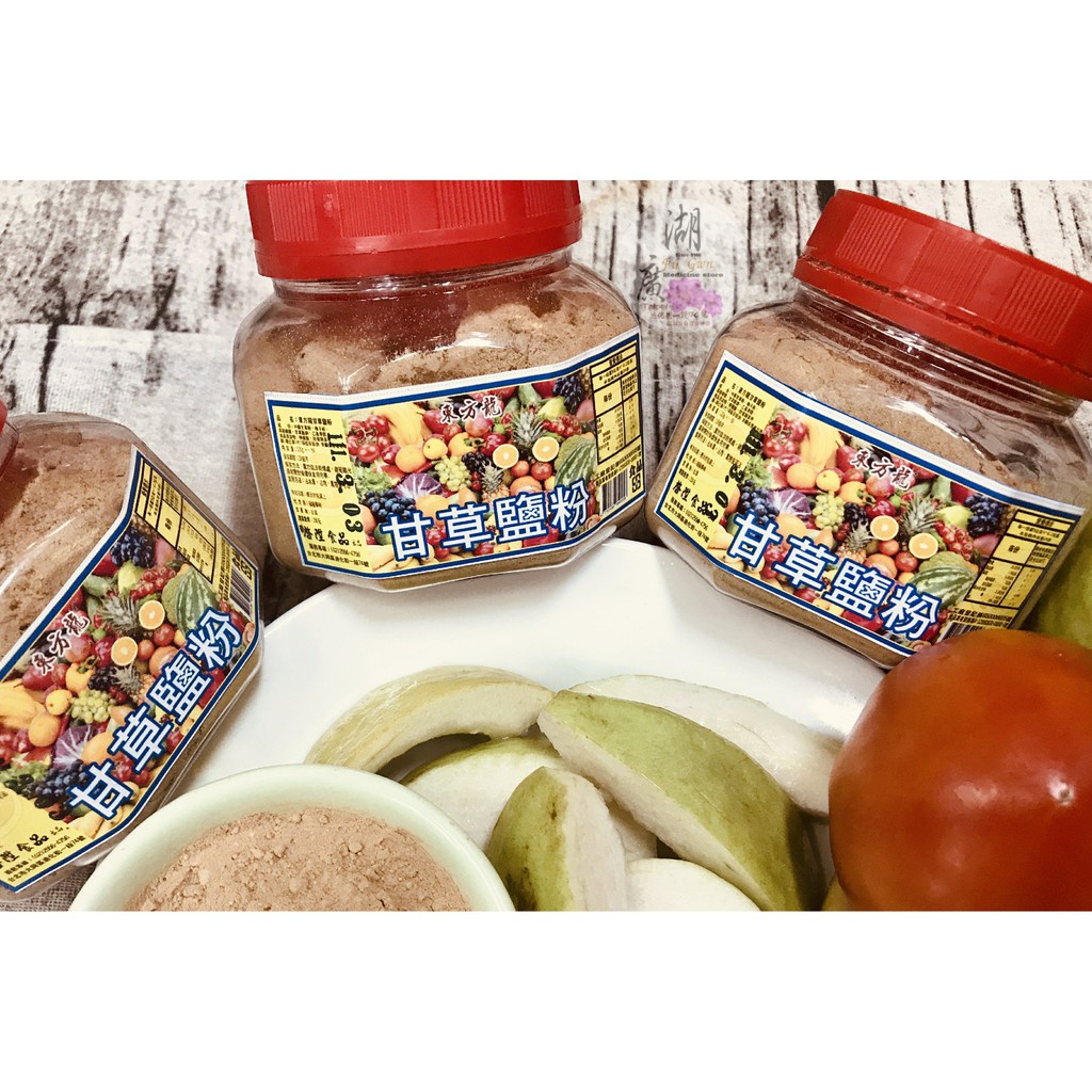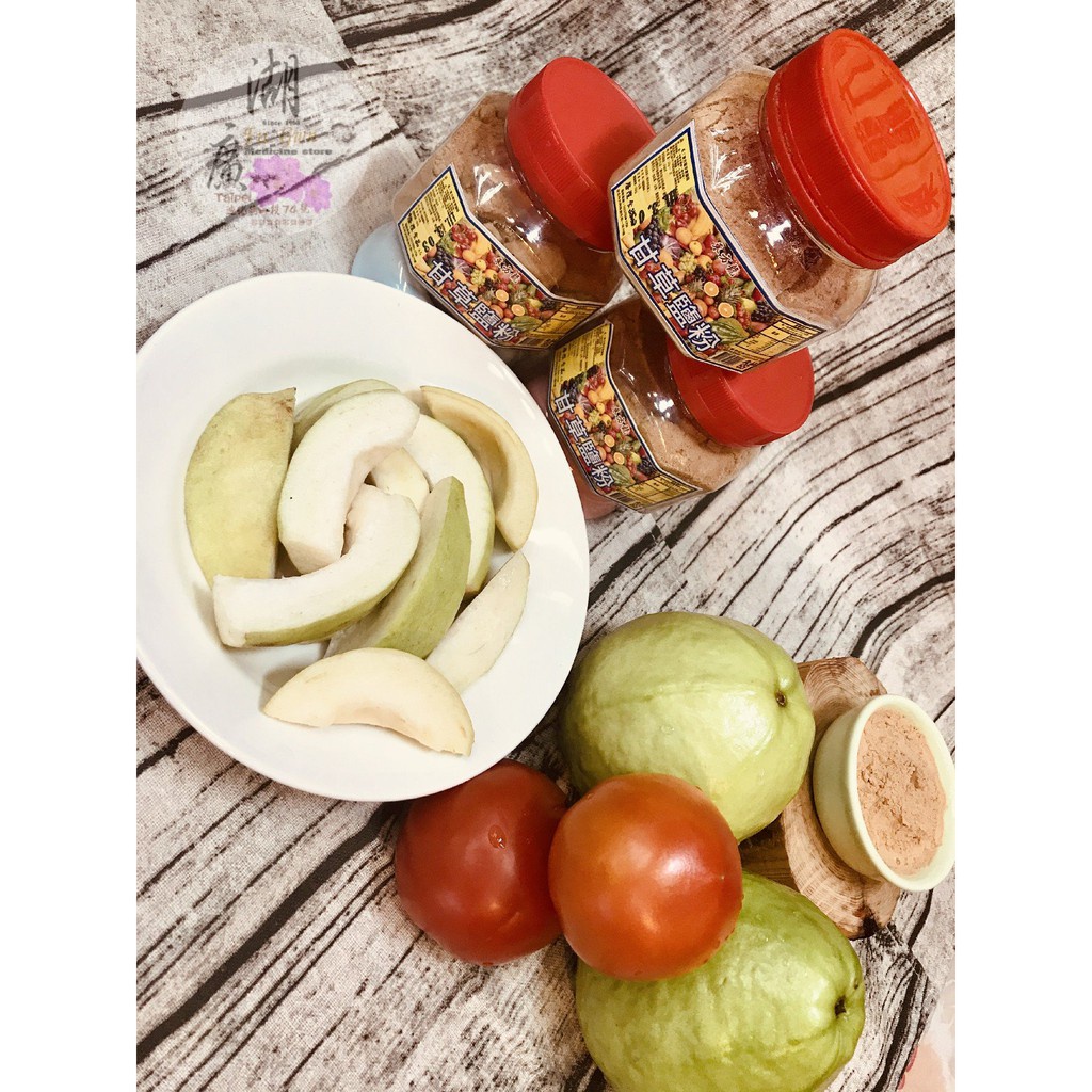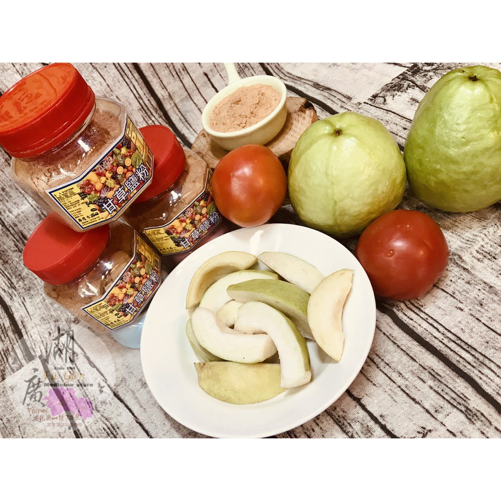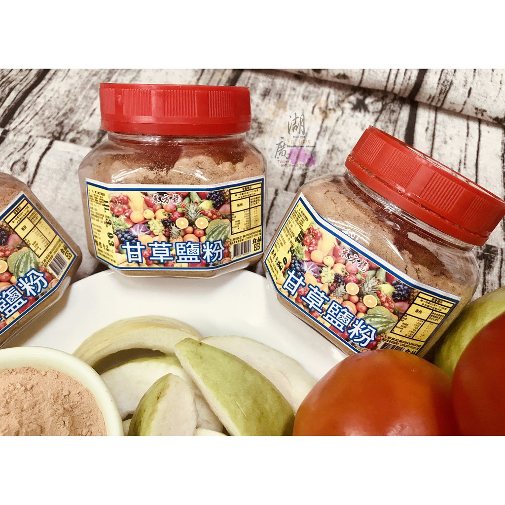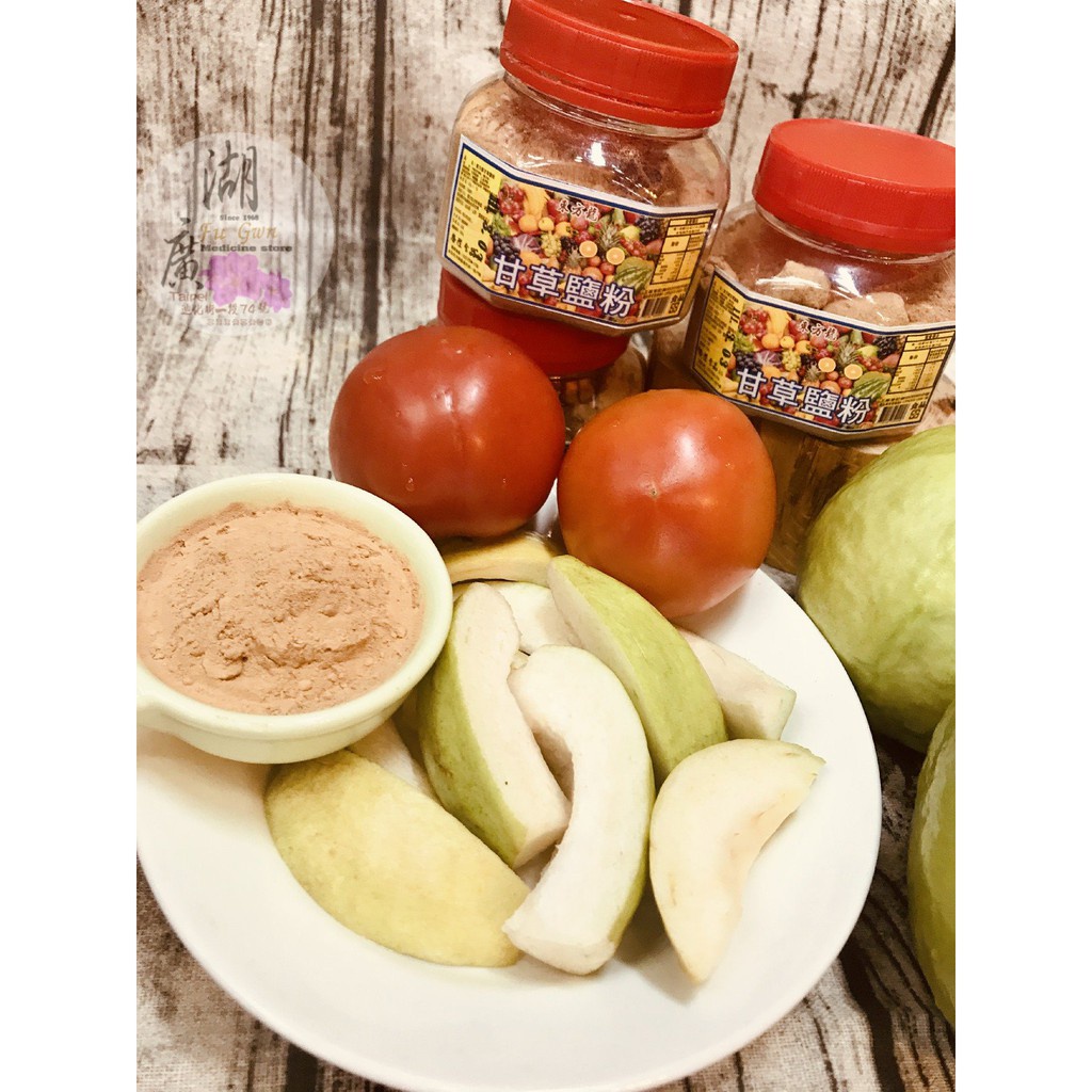 上等甘草粉,中草藥粉,梅子粉,很多辛香料調出來的甘草鹽粉,韻味十足,跟一般甘草鹽粉大不同,同事拿來沾