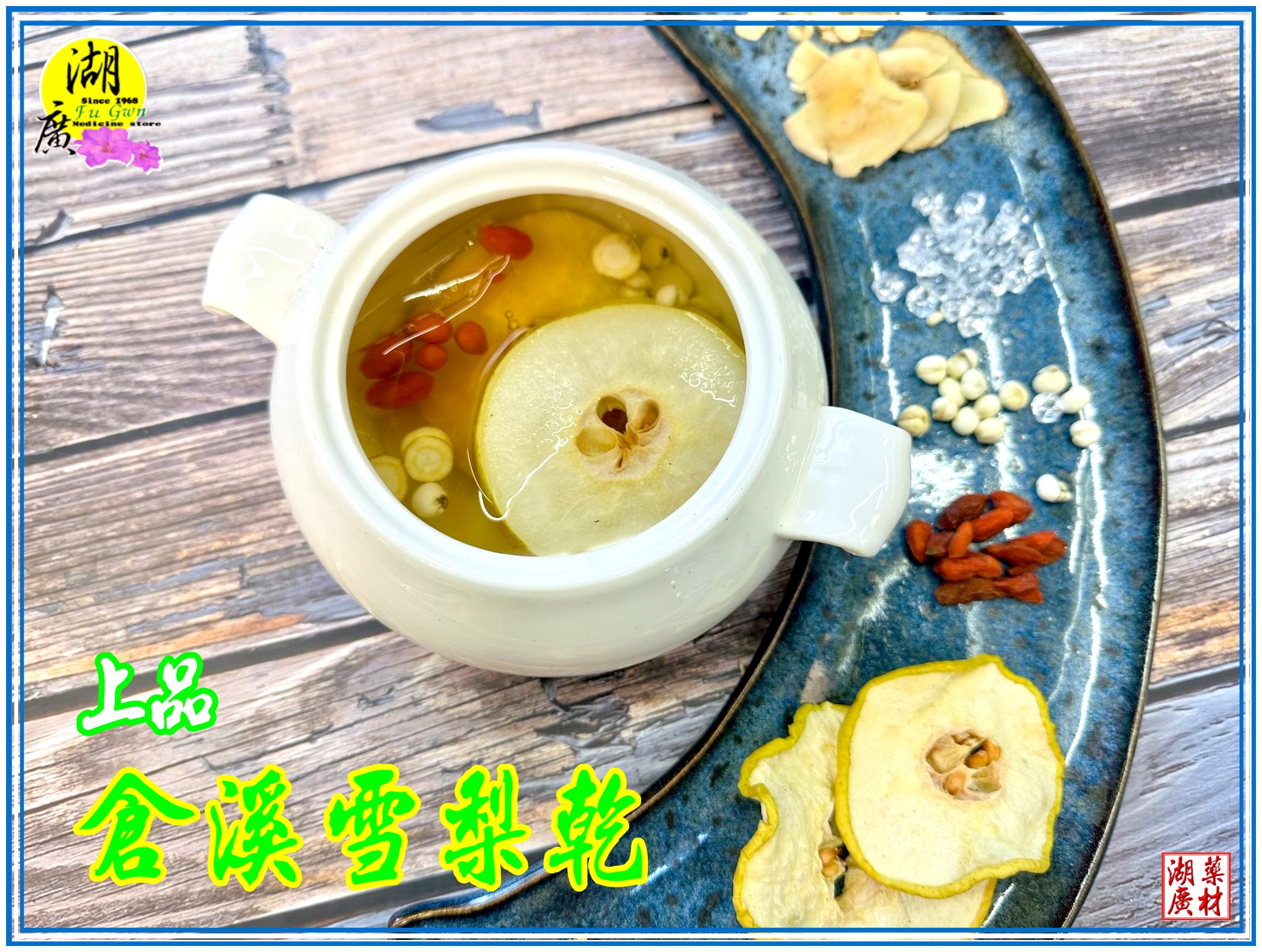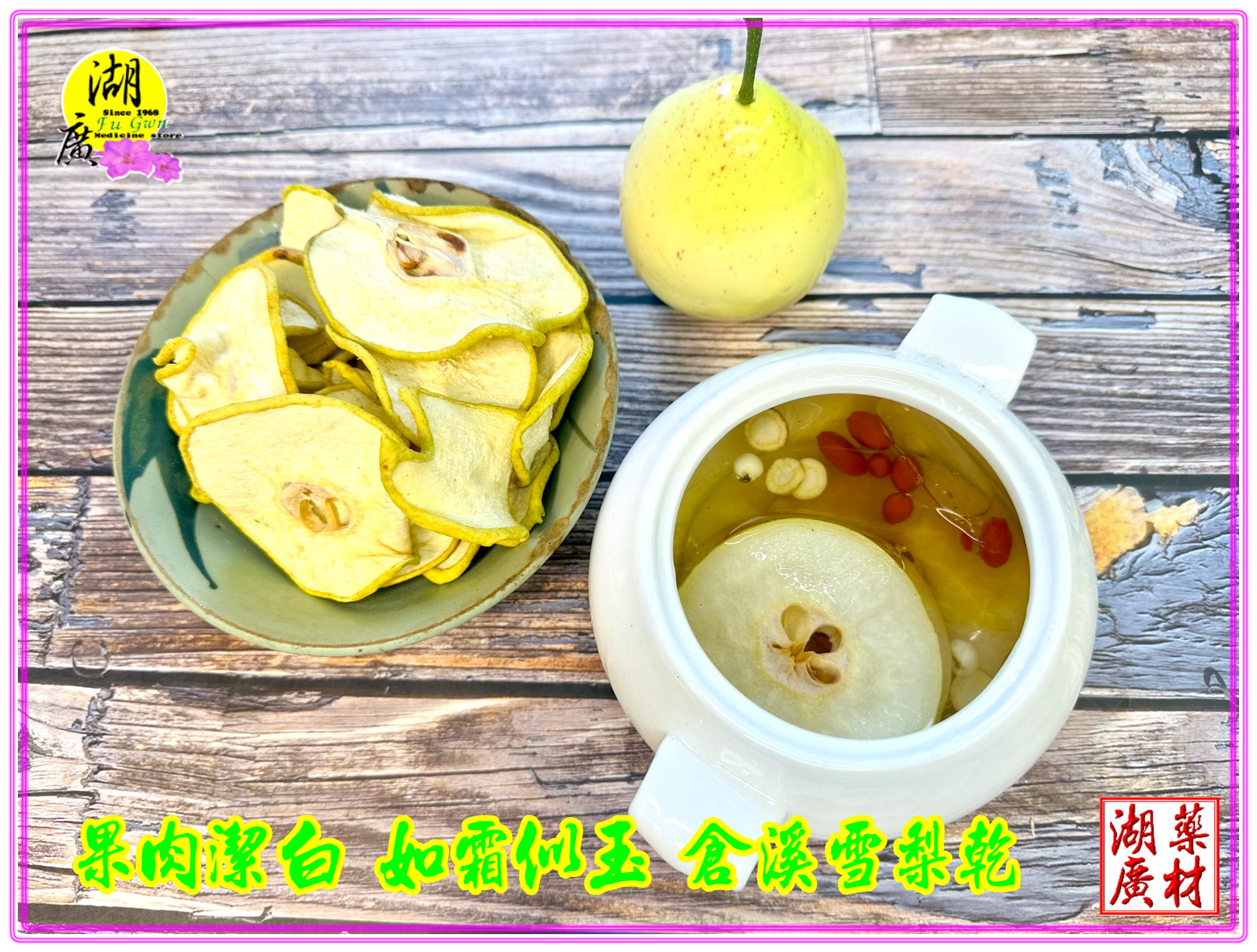 本雪梨為倉溪雪梨手工切片,低溫乾燥,乾燥後,香氣誘人,梨片豐富彈性,清甜,色美,無任何人工添加物,實屬最上乘雪梨.
