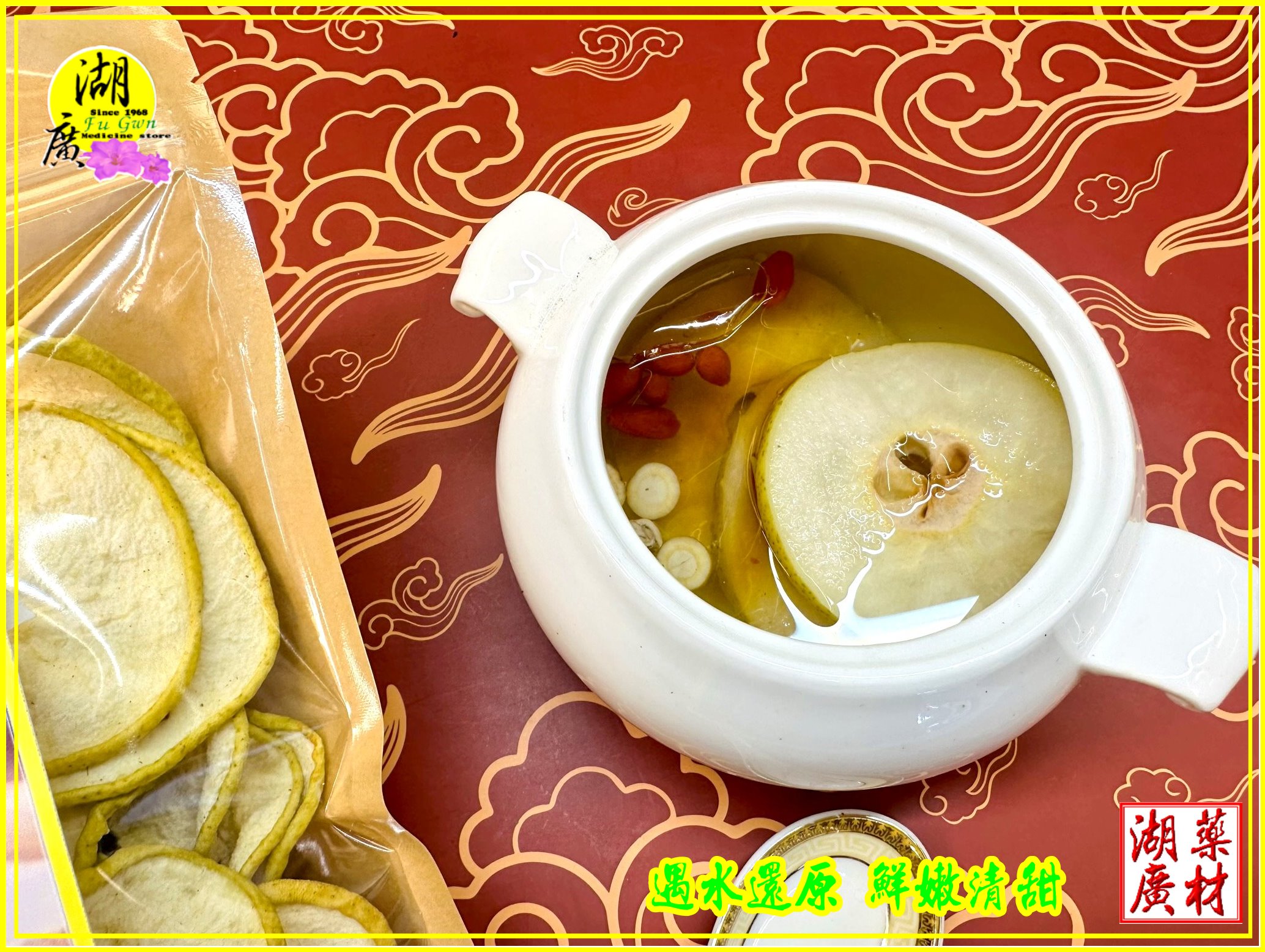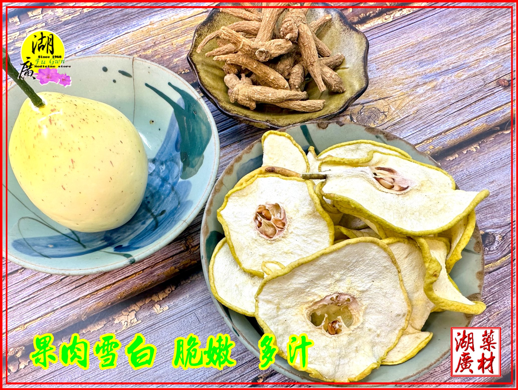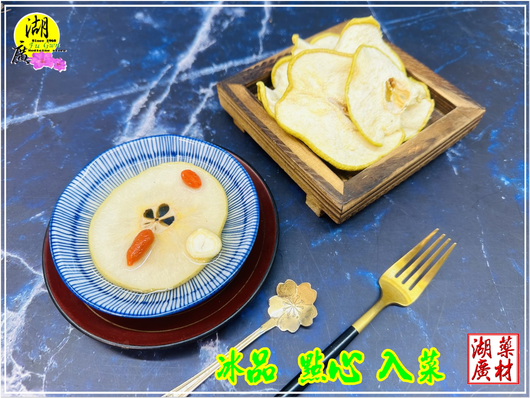 佳的 乾燥雪梨片,浸泡冷開水,還原後使用.