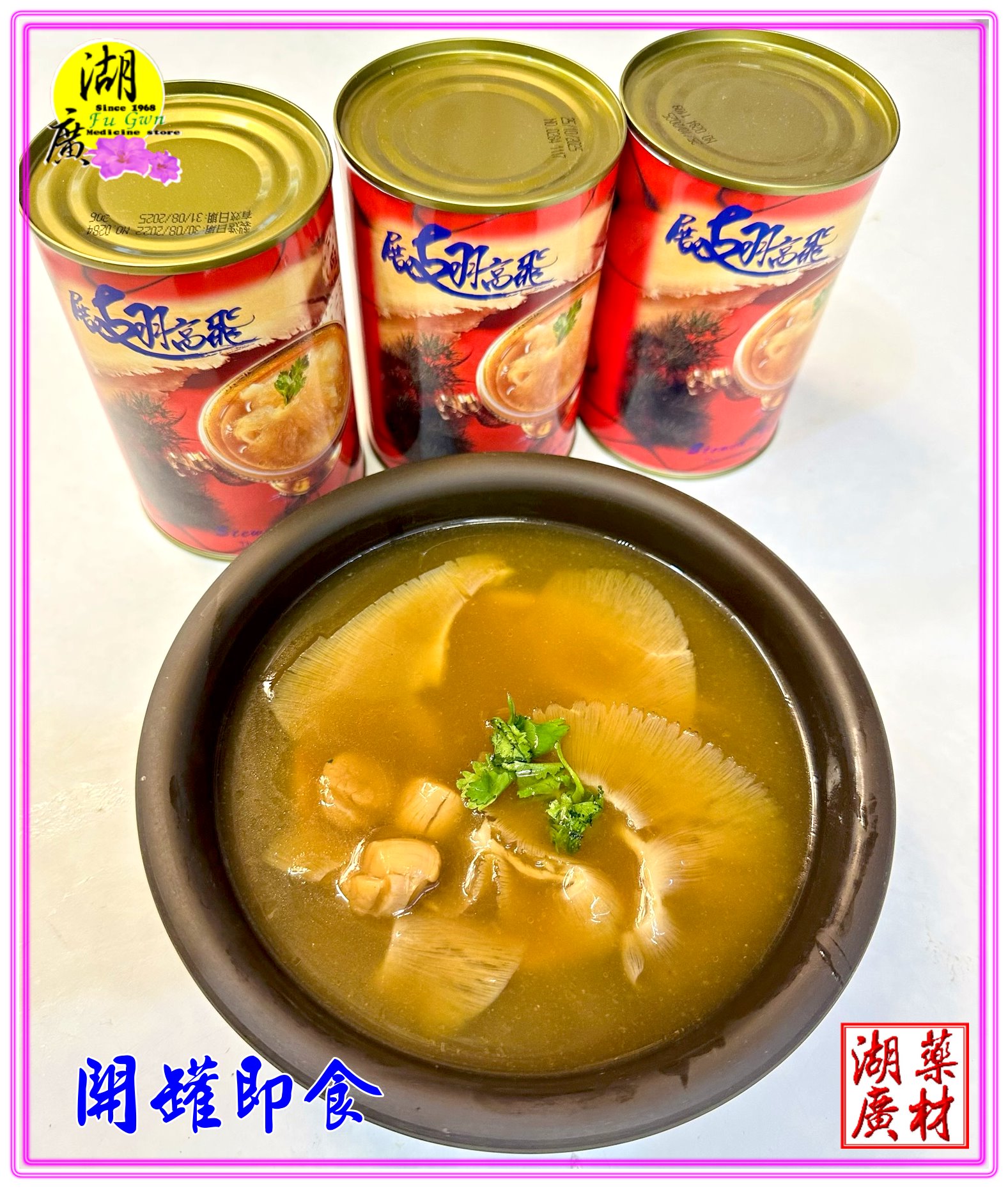 展翅高飛魚翅干貝罐頭 :成分魚翅 干貝 上高湯 蠔油 雞粉 調味料 油 糖 水 調味香料 胡椒 將黃 麥糊精 重量420公克