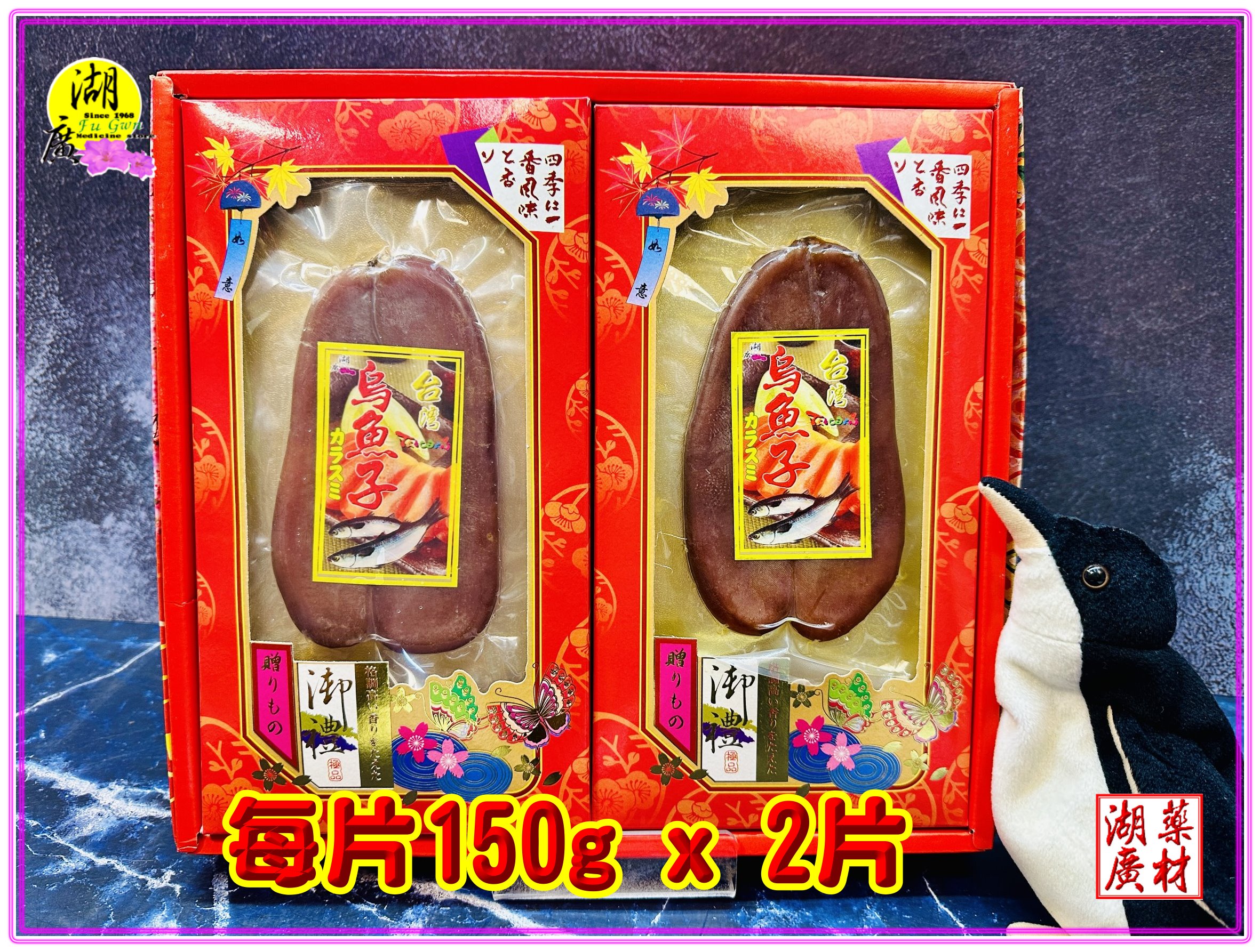 禮盒中內容物如下:台烏布袋產烏魚子 每片150公克 一盒二片