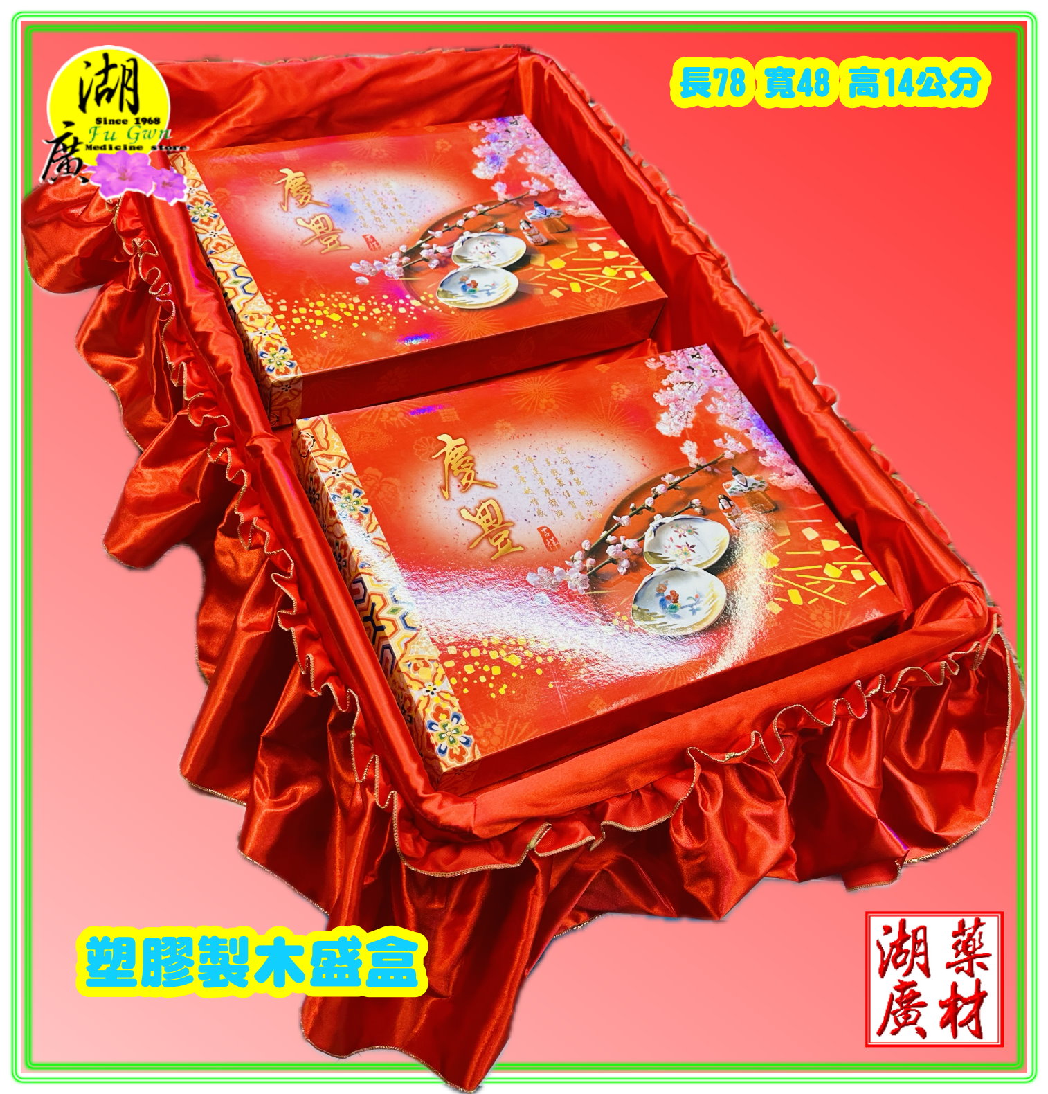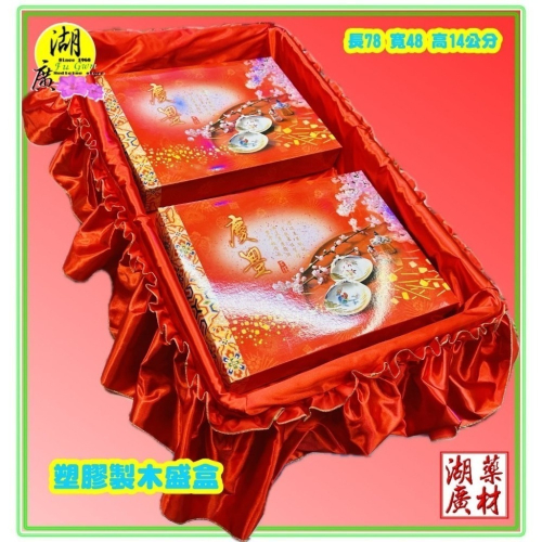 禮盒中內容物如下:(塑膠製) 木盛盒 紅色大喜絨布禮品承裝箱 尺寸 長78 寬48 高14公分