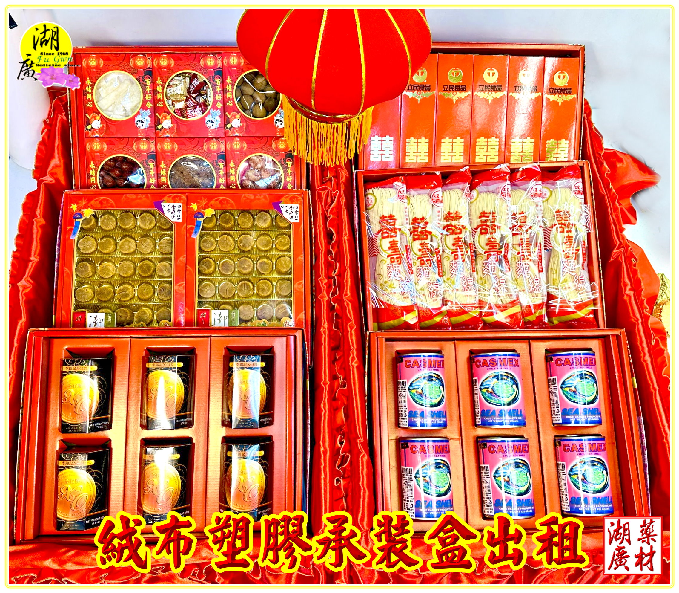 紅色大喜絨布禮盒 塑膠製 木盛盒出租 :租用一個費用380元,再加押金1600元,共1980元 因使用宅配收送租借,買家需自行負擔另外420元收送費用.一共