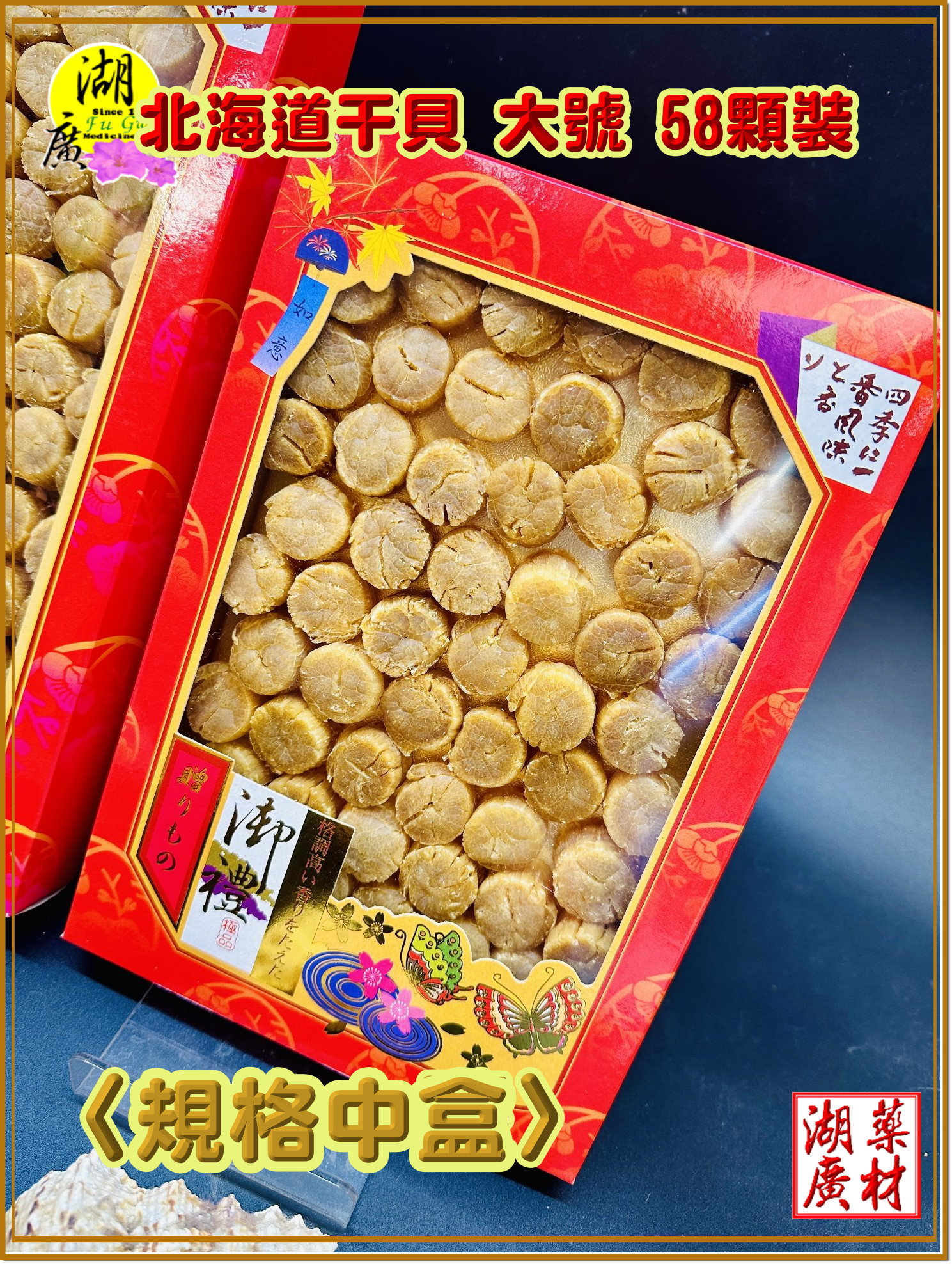 〔中盒 霸王干貝 〕 干貝內容量 共干貝 58顆。淨重418公克±5%
