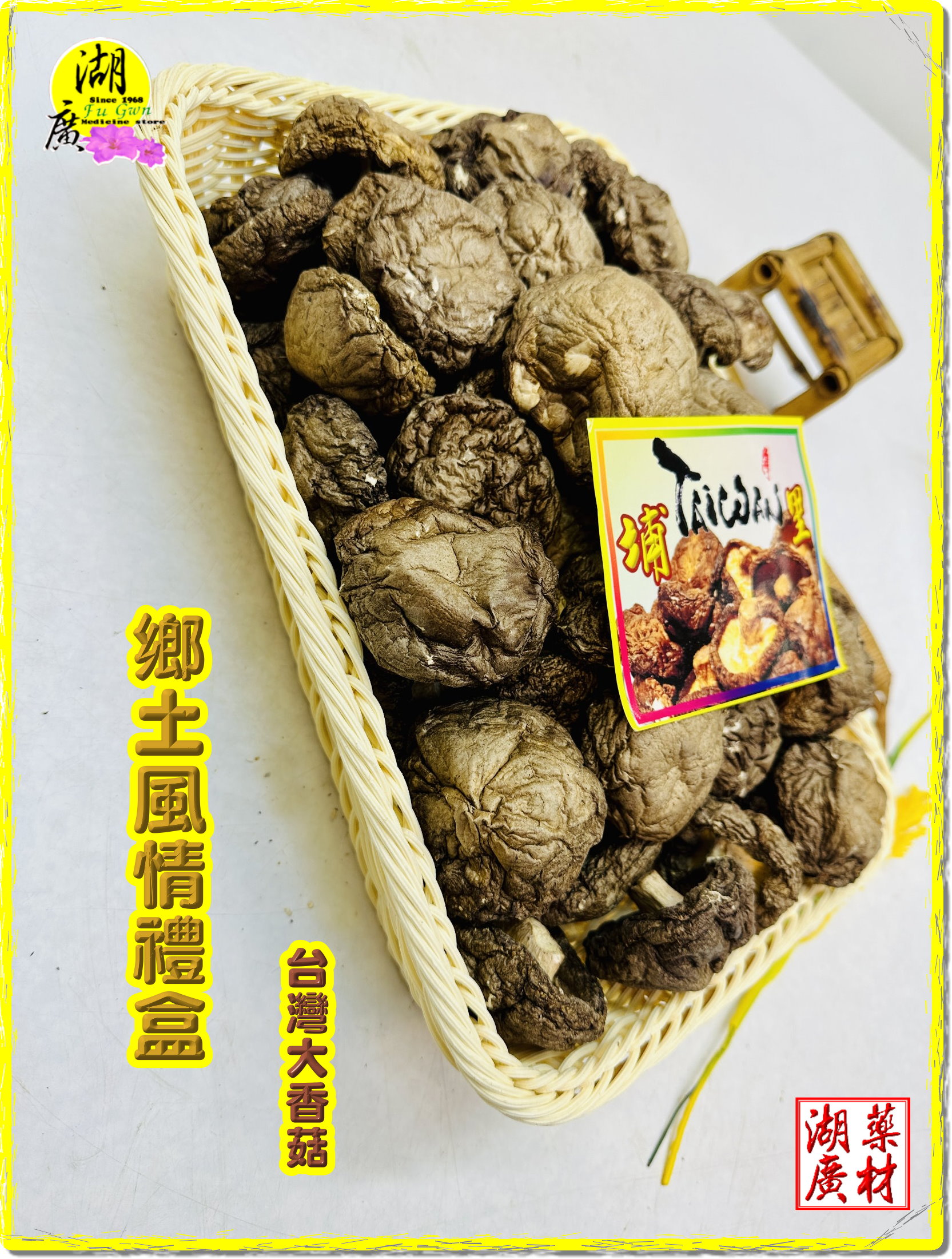 本禮盒中 內裝大香菇實際 淨重為 300 公克 ,鄉土編織籃,精美包裝,並附贈高級禮袋一只.