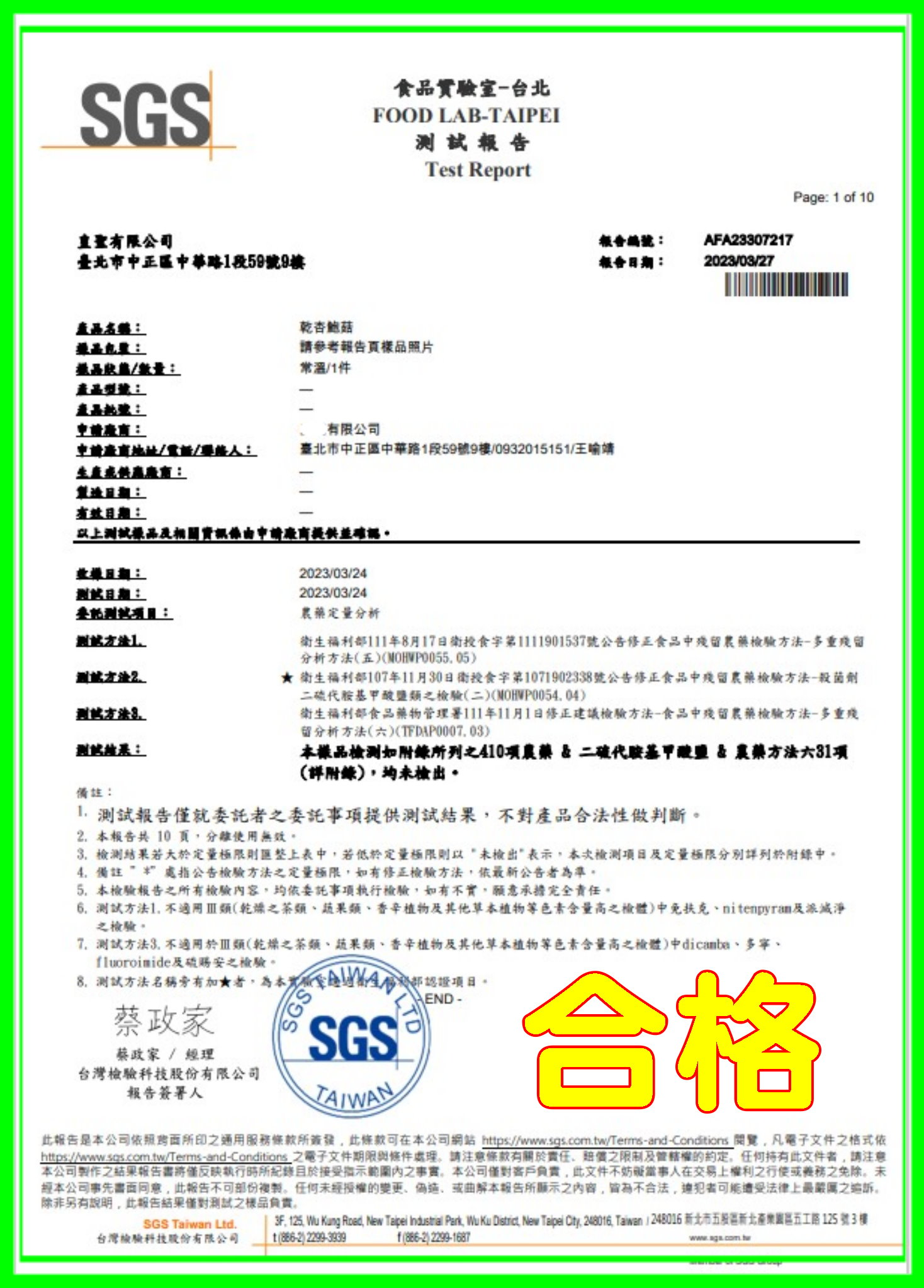 SGS檢驗合格,杏鮑菇 . 因為吃起來口感像鮑魚,聞起來又有一股淡淡的杏仁香,故得名杏鮑菇.