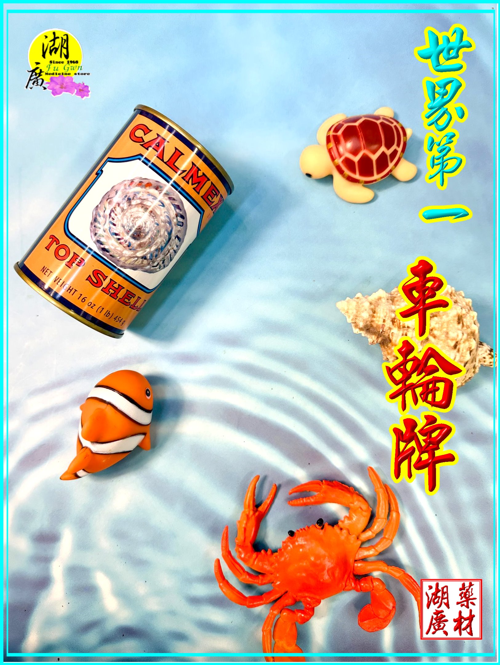 就是 CALMEX 車輪牌 鮮螺肉. 由美國 海洋公園公司出品,墨西哥製造 鮮螺 清湯罐頭 ,品質絕對第一,是世界第一 !!
