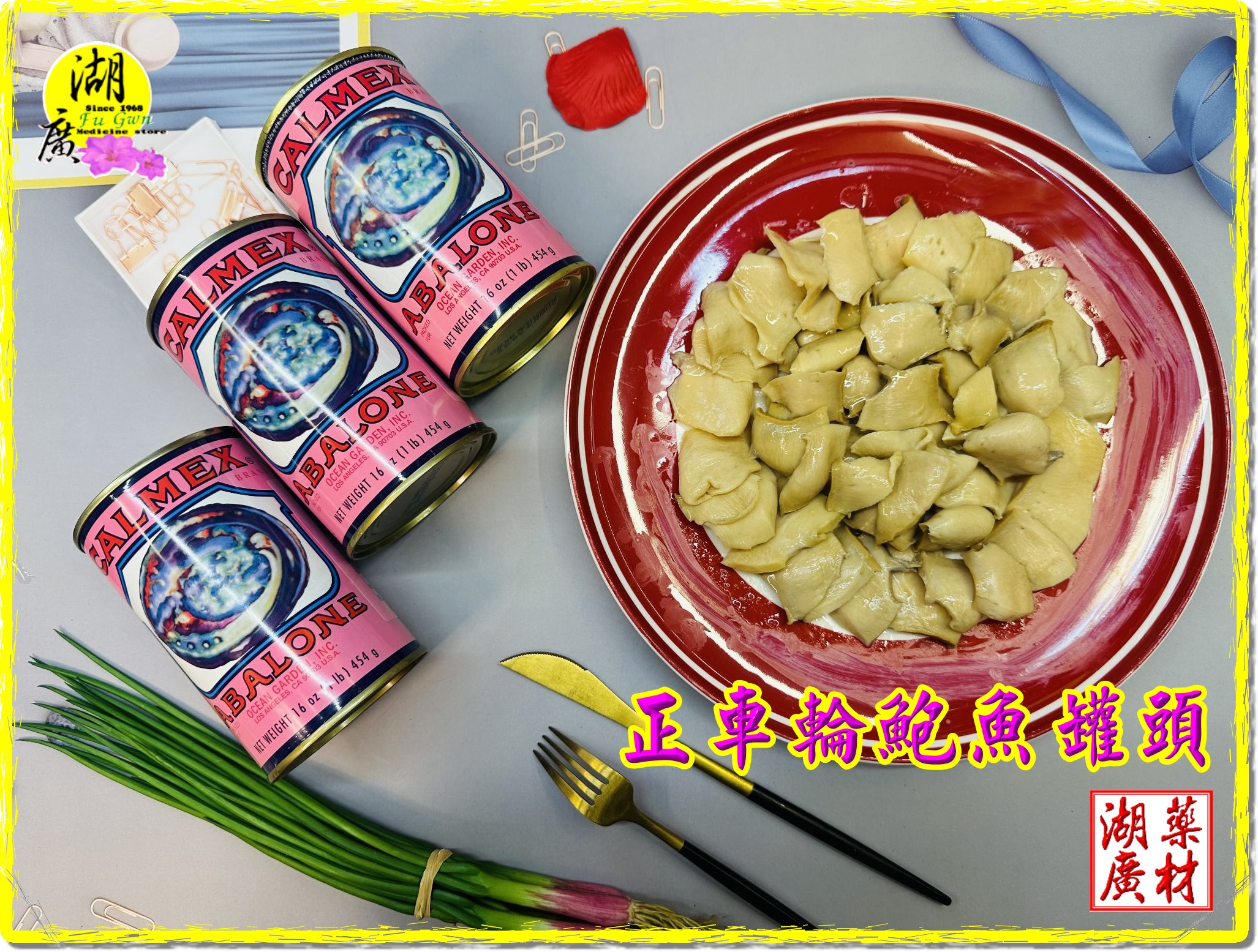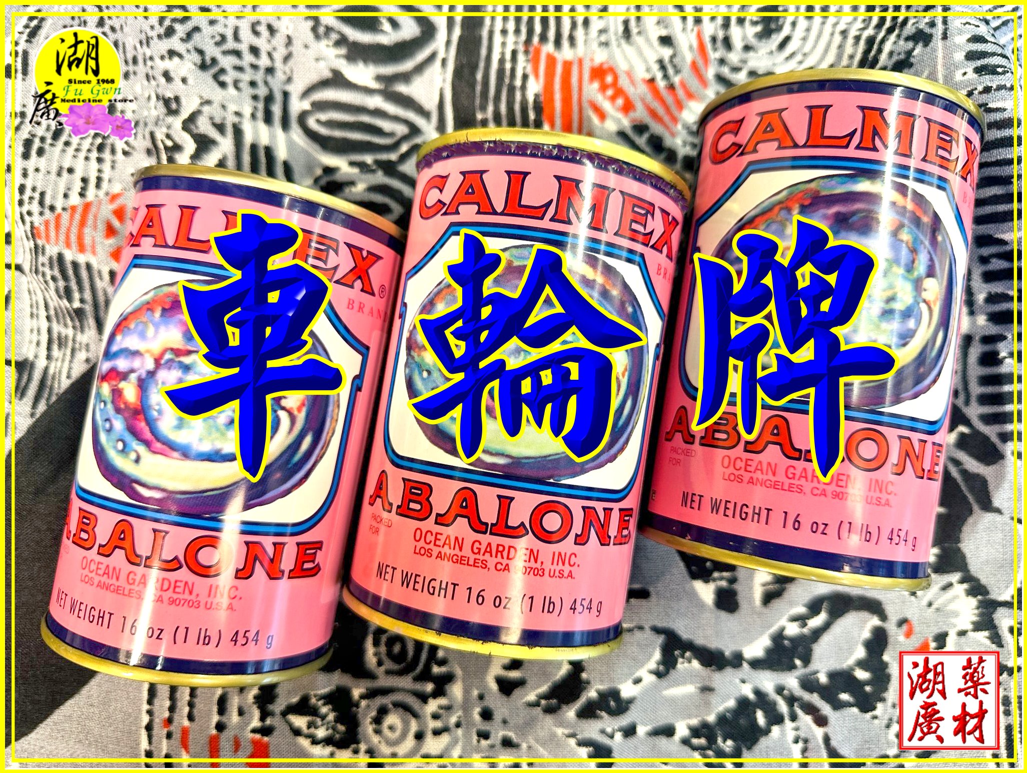 一罐 墨西哥產製的 車輪牌鮑魚罐頭,美國加州與墨西哥一代出產最佳黑鮑魚(澳洲產製的價格較低,要注意),美國海洋公園水產公司出品,墨西哥出產製造,