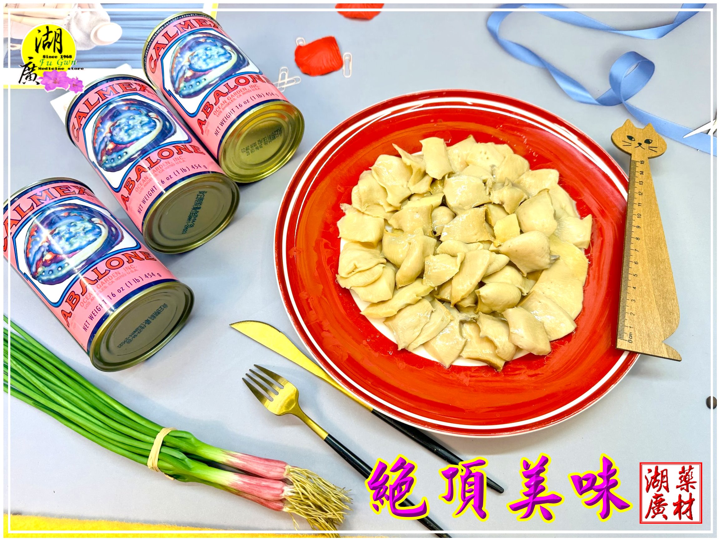 那麼他一定用此賣場販售的墨西哥車輪牌鮑魚切片罐頭開罐供應的,因為口感絕佳,鮮嫩多汁,所向披靡. 因為這個罐頭都是使用 超大鮑魚因為超重,而切下的鮮香結