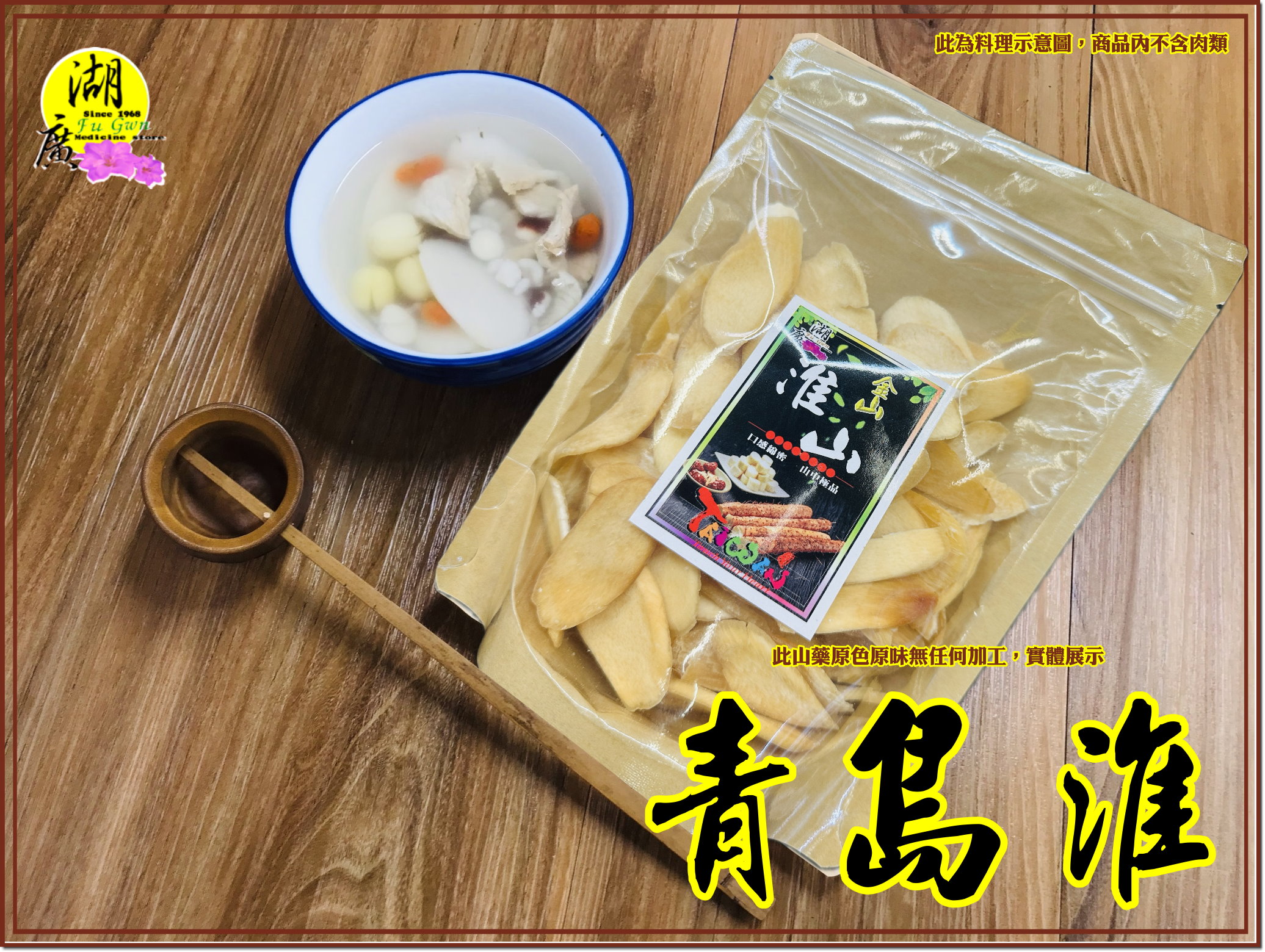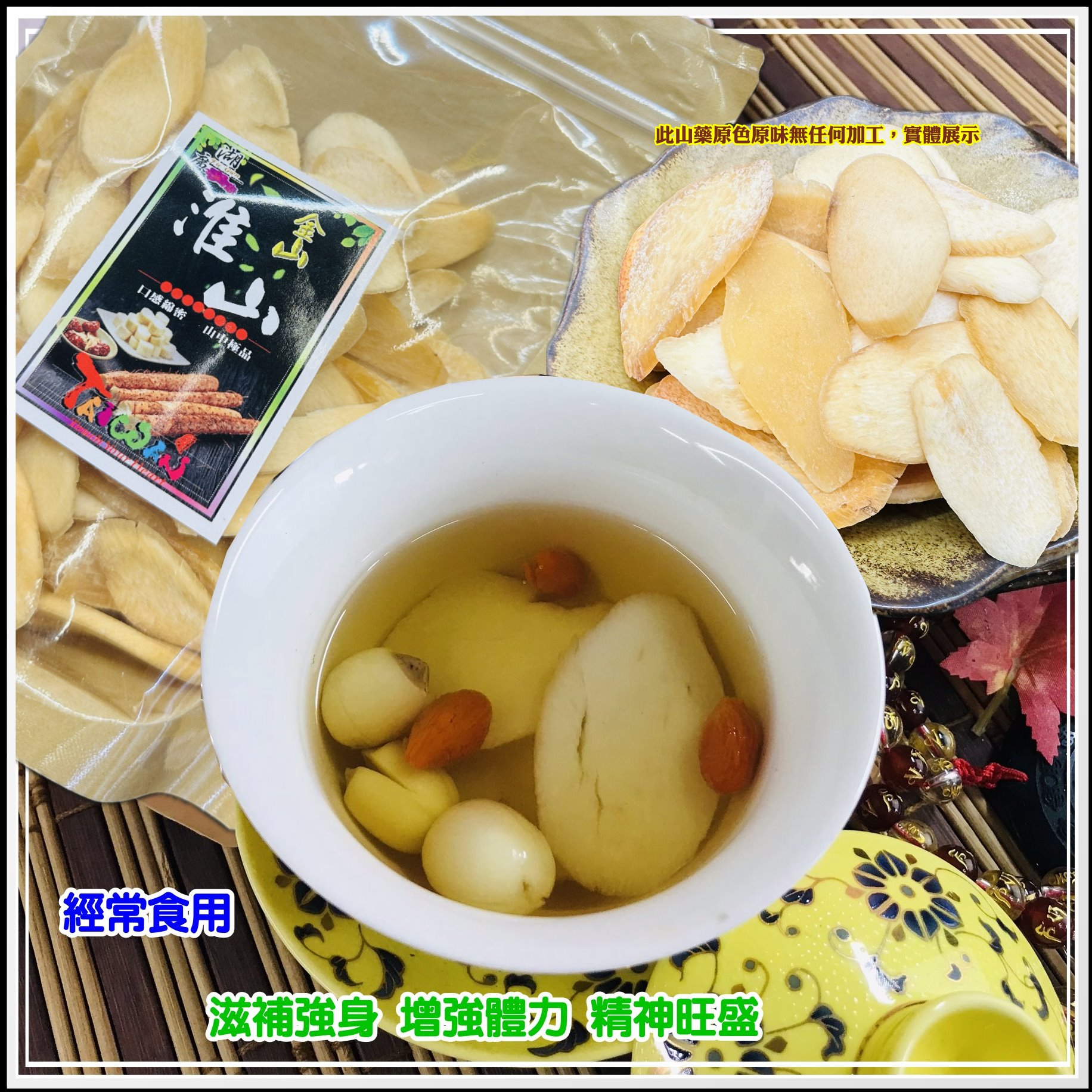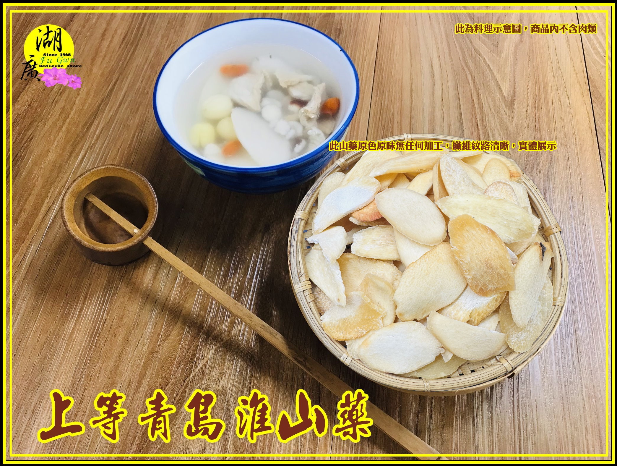 本店嚴選 青島淮山藥, 口感綿密 煮湯燉湯不可錯過,未經加工漂染,色澤偏暗,或黃,因為是最自然無
