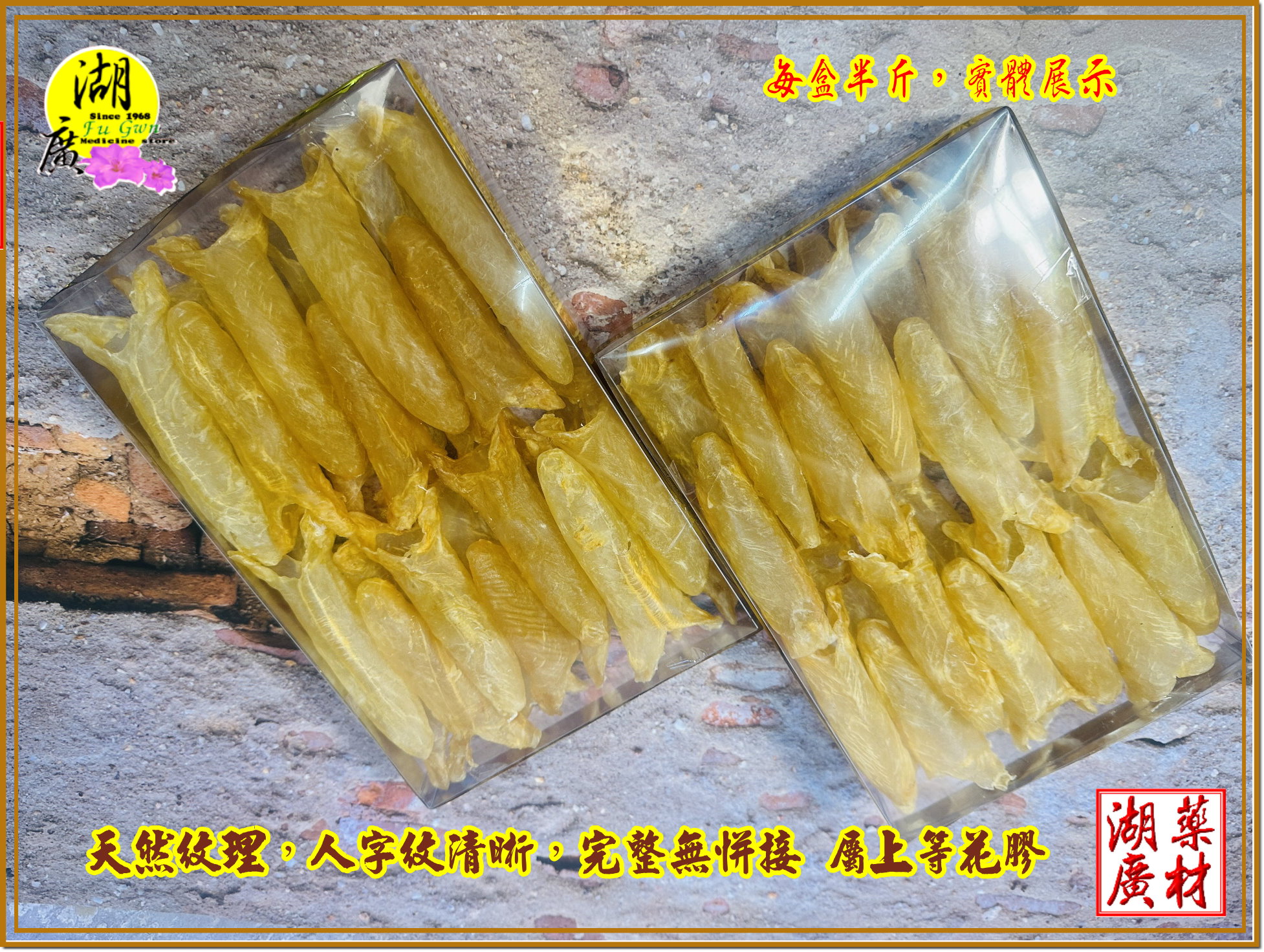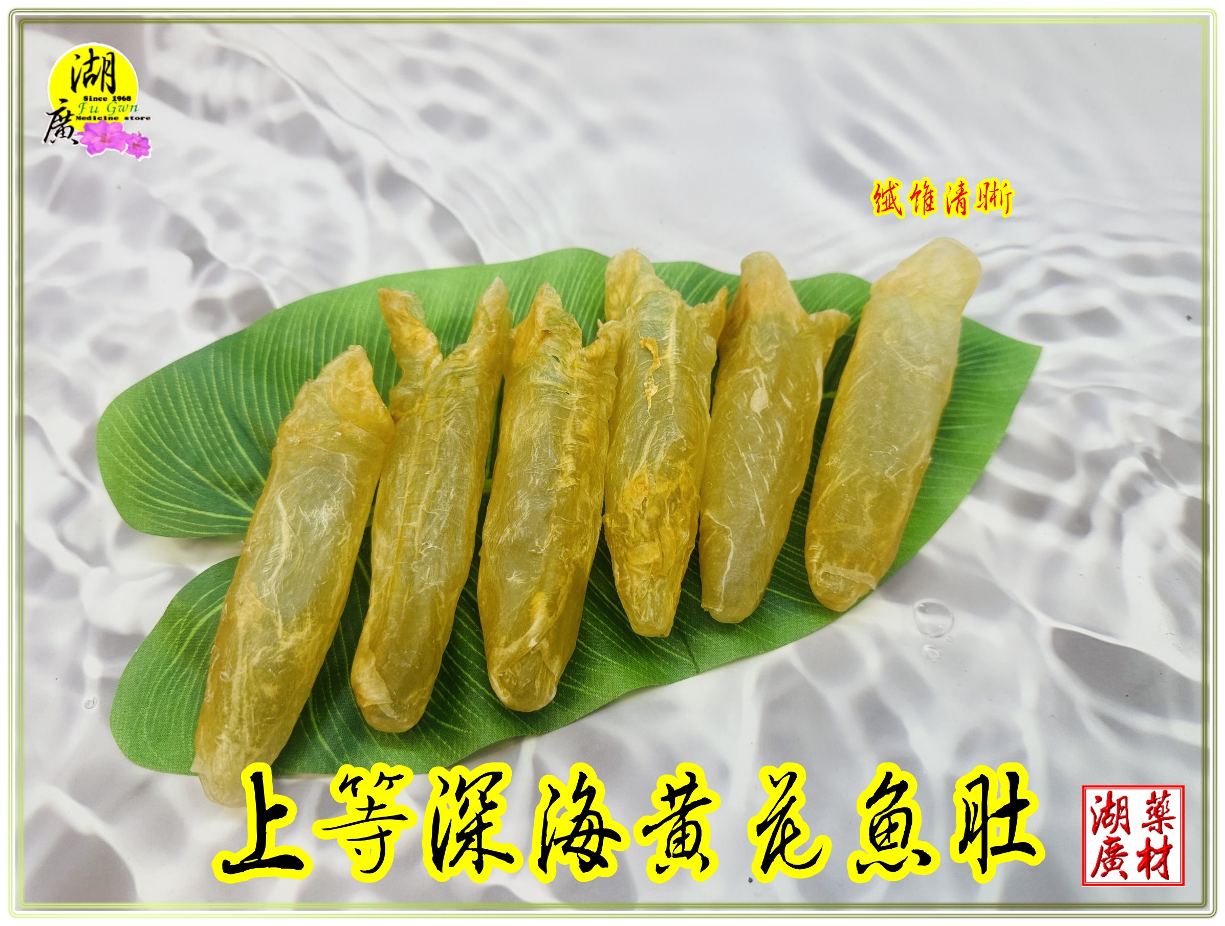 魚膠上人字纖維清晰,無拼接,清香無臭味,屬上乘黃花魚肚筒膠,(其實台灣購買,價格與國外差不多,又有保障)