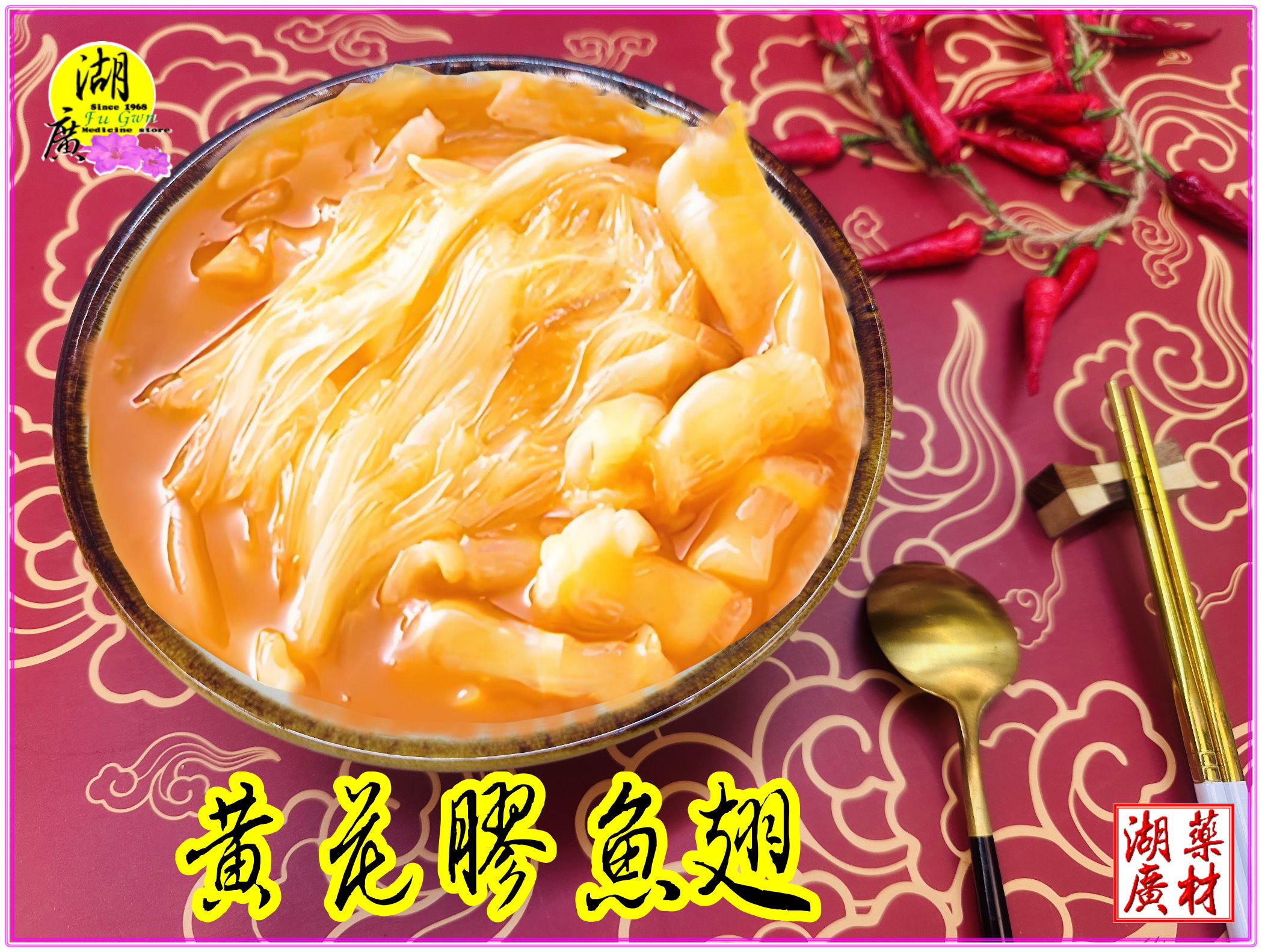 黃花魚膠為最高膠原蛋白食材,可以通過許多方式,來吃美食,兼保養自己. 你可以搭配 老母雞,枸杞,發