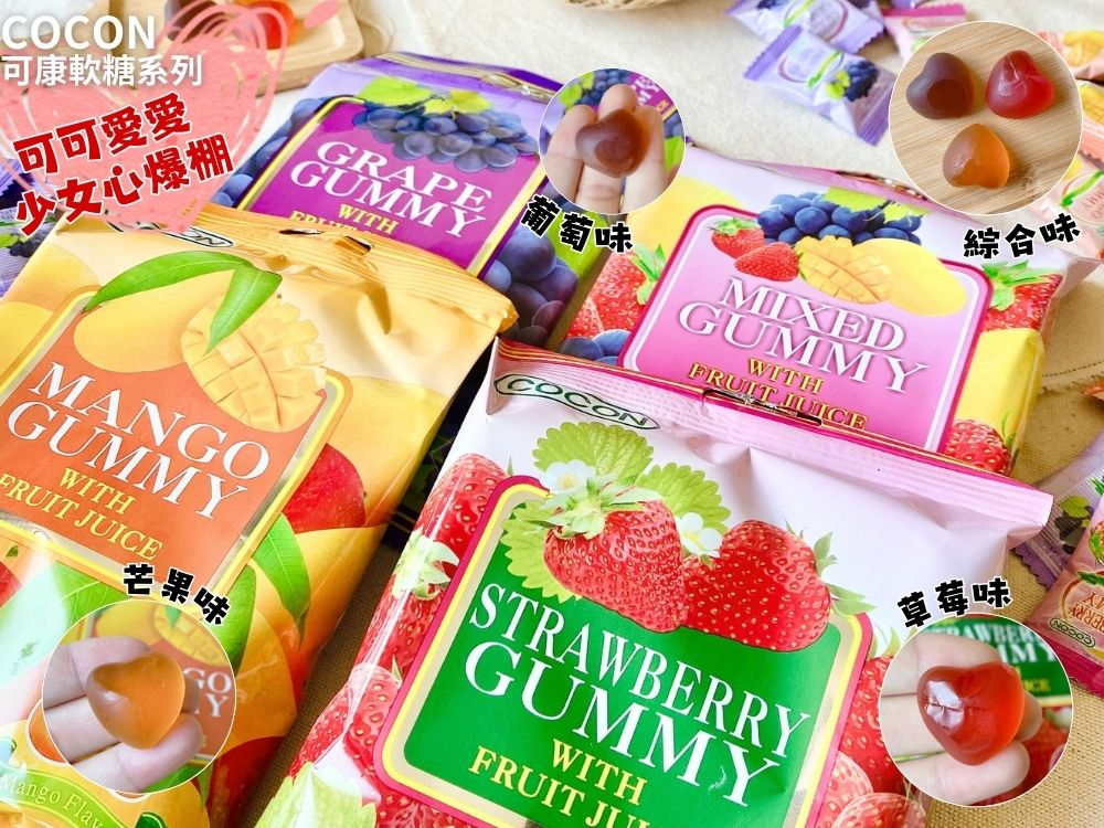 。可康草莓QQ:草莓味(葡萄糖.糖.水.明膠.草莓汁(濃縮果汁還原).甜味劑(D-山梨醇).檸檬酸.香料.食用色素(紅色40號)