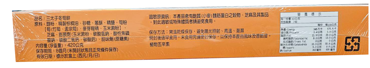 三太子-冬筍餅/芋頭餅禮盒420G(植物五辛素)