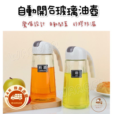 【24H 台灣出貨】自動開合玻璃 油壺玻璃 油瓶 玻璃油瓶 玻璃瓶 瓶子 油壺 廚房 調味瓶