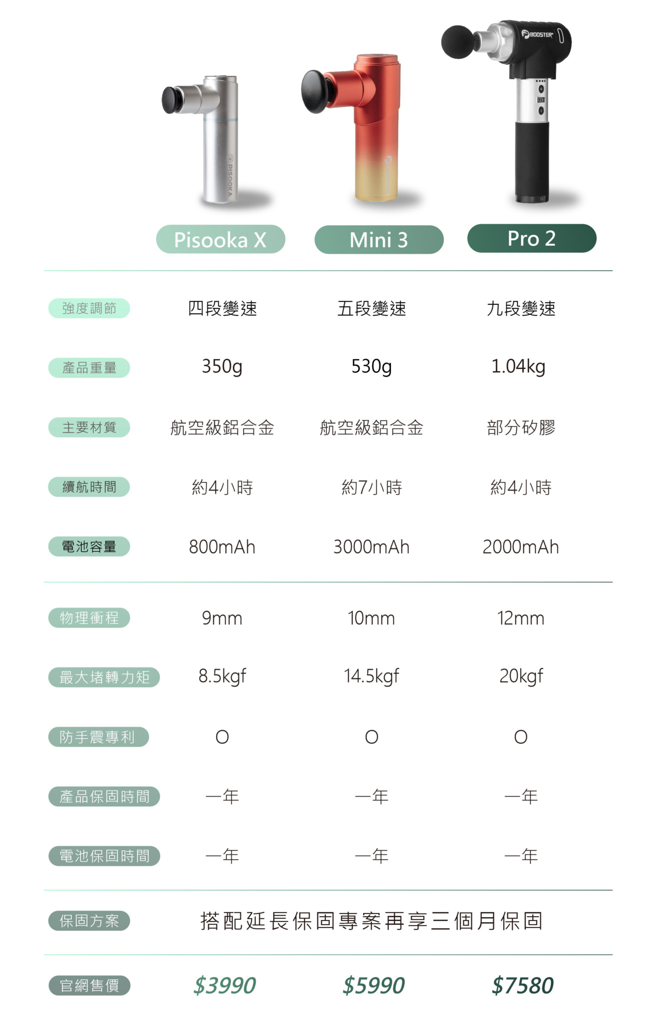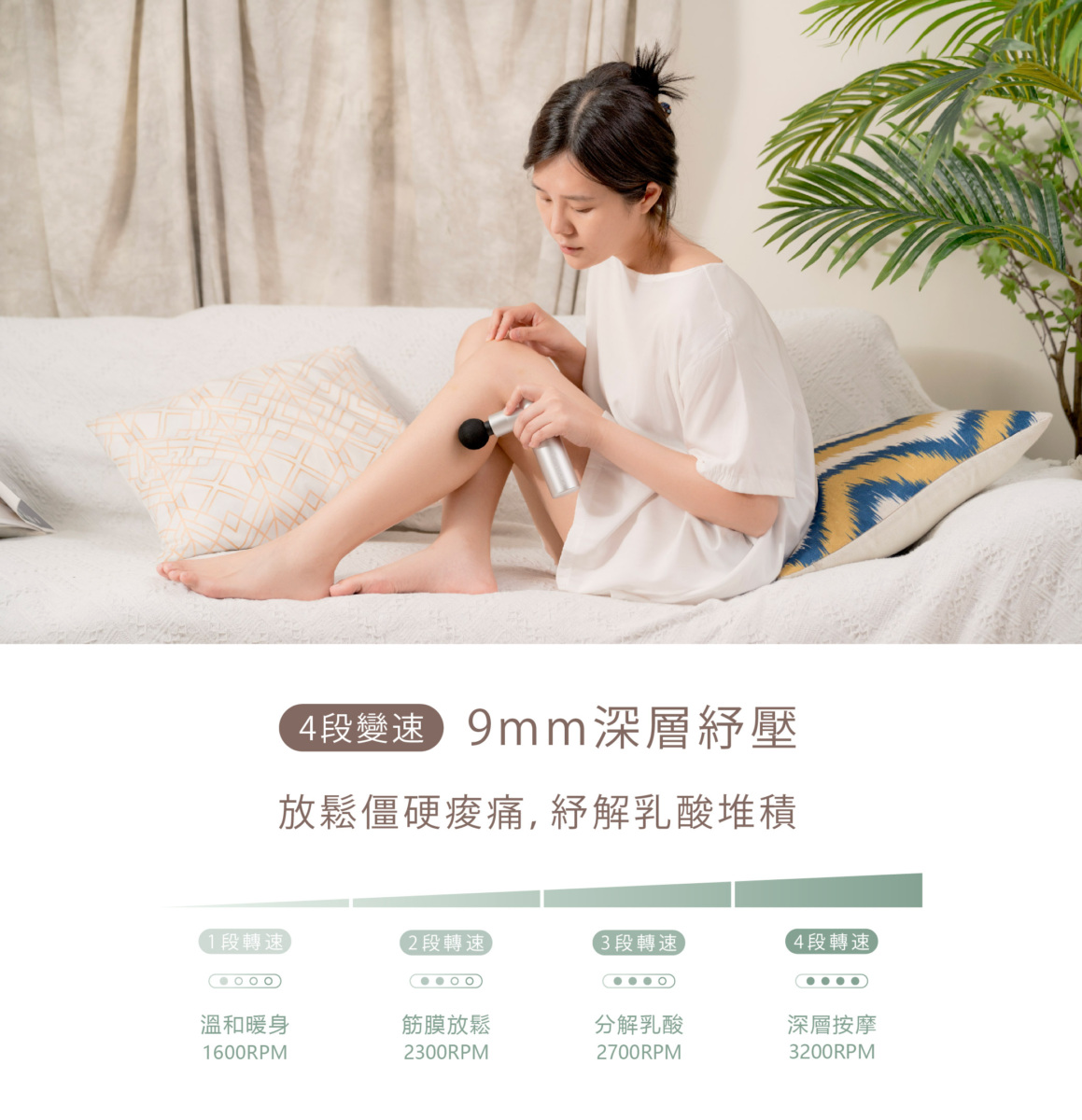 ◆ 同級力道最強4段變速調節,9mm深層打擊乳酸堆積