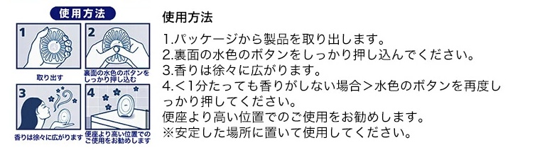②香味逐漸散開。 <如果 1 分鐘後聞不到氣味> 再次用力按下淺藍色按鈕。