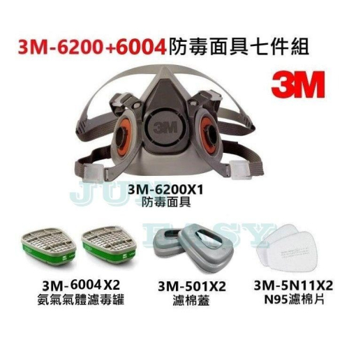 單位:ㄧ組(7件式) 內容:6200面罩主體x1(波蘭製)、6004氨氣氣體濾毒罐x2、5N11濾棉片x2、501濾棉蓋x2