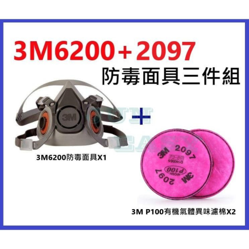 內容:3M 6200面罩主體(波蘭製)x1個、3M 2097 P100等級有機氣體異味防塵濾棉片(韓國製)x2片