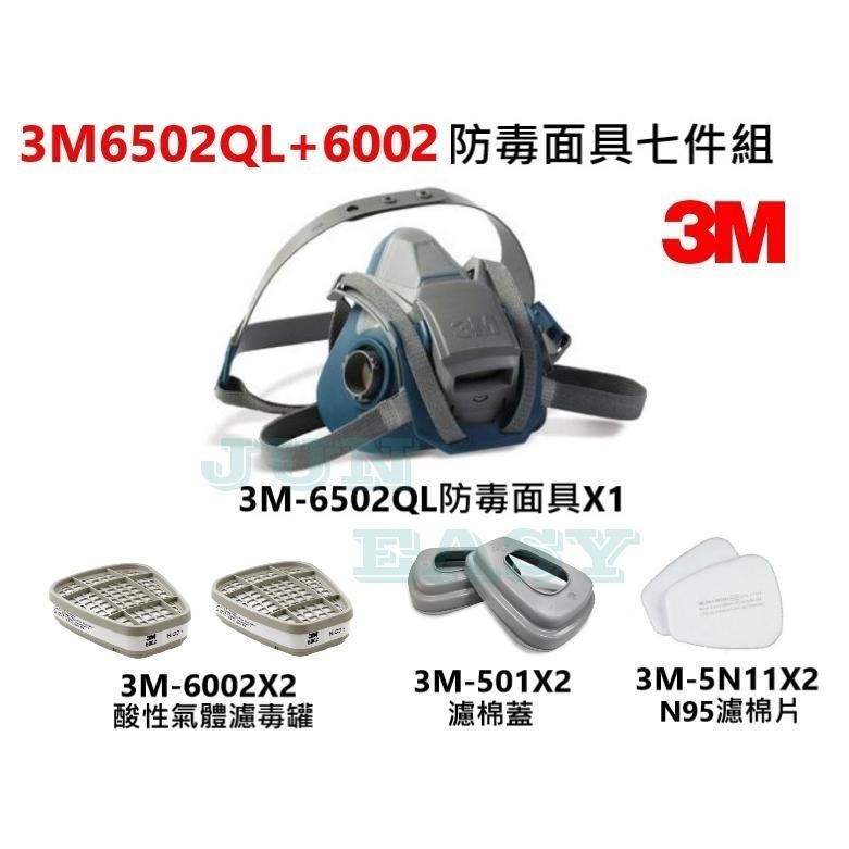 單位:ㄧ組(7件式) 內容:6502QL快拆式面罩主體x1(美國製)、6002酸性氣體濾毒罐x2、5N11濾棉片x2、501濾棉蓋x2