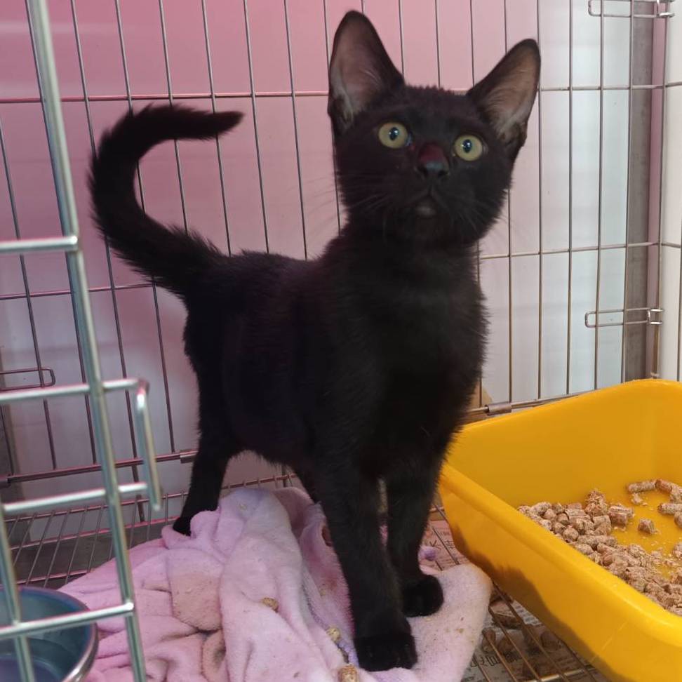 我是長期救援流浪狗、流浪貓的愛心志工,現在在新北市板橋區公立動物之家有一隻名叫阿熊的小小米克斯黑貓。颱風帶來了滂沱大雨和突如其來的淹水,阿熊和他的家人們住在巷弄中,原本安穩的小天地變成了水深難渡的危險之地。大雨中,小貓們無處可逃,微弱的哭泣聲在濕冷的夜裡不斷響起,讓人心疼又無助。幸好,有位善良的民眾聽見了這些呼救聲,他們義無反顧地冒雨尋找,終於在水中發現了顫抖的小小身影,並將他們安全地帶到動物之家安置。阿熊經歷了風雨中的驚險,卻依然保有著溫柔與信任,他的眼睛裡閃爍著對人類的依賴與渴望,等待著一個不再離散、不再流浪的家。他是一隻親人且乖巧的小貓咪,只希望能有個溫暖的懷抱和一個安全的住所,不再害怕風雨的來臨。如果您願意,請為阿熊提供一個家,讓他能安心度過每一天,用愛與陪伴溫暖他的小小生命。