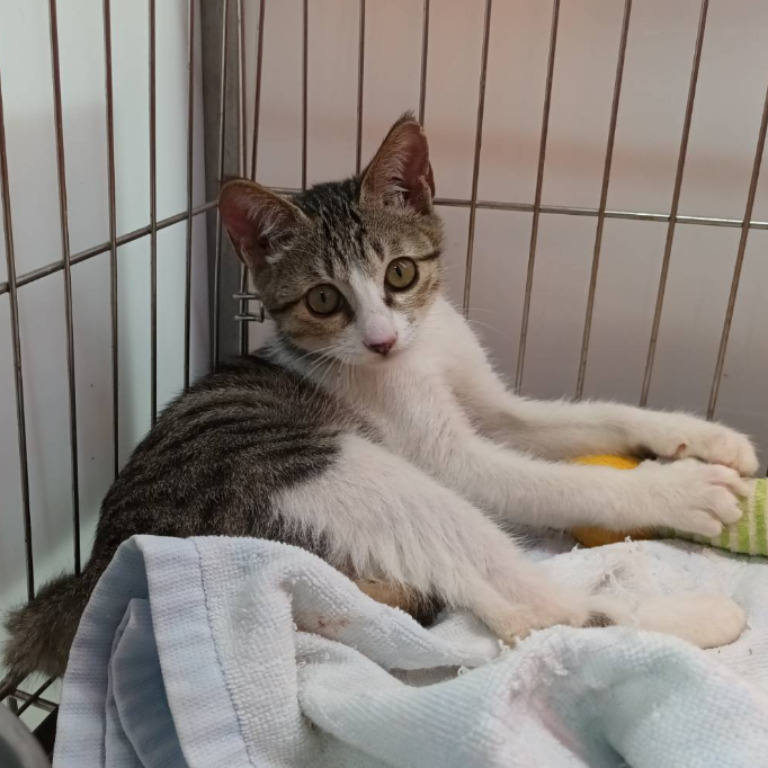 我是長期救援流浪狗、流浪貓的愛心志工,現在在新北市板橋區公立動物之家,有一隻米克斯白底虎斑的小幼貓,名字叫做樂樂。樂樂曾與他的同胎兄妹一起在簡陋的車棚裡度日,當天氣驟變、風雨交加時,小小的身體只能蜷縮在一起,努力尋找一絲溫暖與安全。他們的叫聲曾淹沒在狂風暴雨中,但幸運的是,有善心人士發現了這群無助的小生命,將他們送往動物之家。樂樂是其中一隻倖存下來的小貓,他的眼神中充滿了對愛與歸屬的渴望。雖然曾經歷艱難,樂樂依然保持著天真的性格,他穩定親人、也喜歡與其他貓咪玩耍,散發著純真的快樂。現在的樂樂已經準備好接受新生活,他期待著能有一個溫暖的家,讓他不再害怕風雨、寒冷與孤單。希望您能給樂樂一個機會,帶他回家,讓他成為您生命中的一道暖陽,用他的依賴與陪伴融化每一天的疲憊。