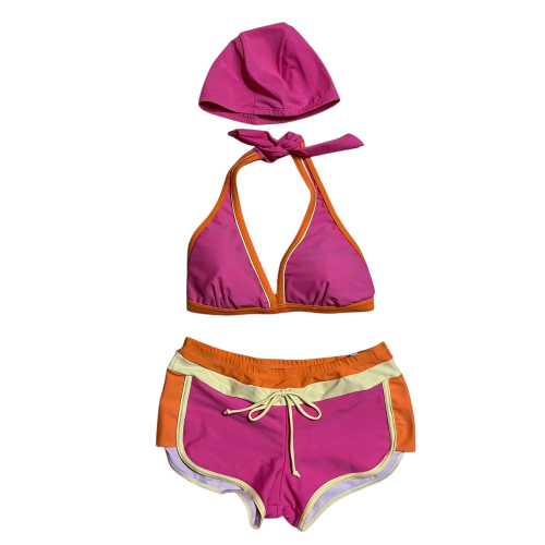 二手,三件組,含泳帽、泳衣、泳褲,功能正常,可板橋拿取。結帳需滿 99 才出貨,減少包材與碳排放。