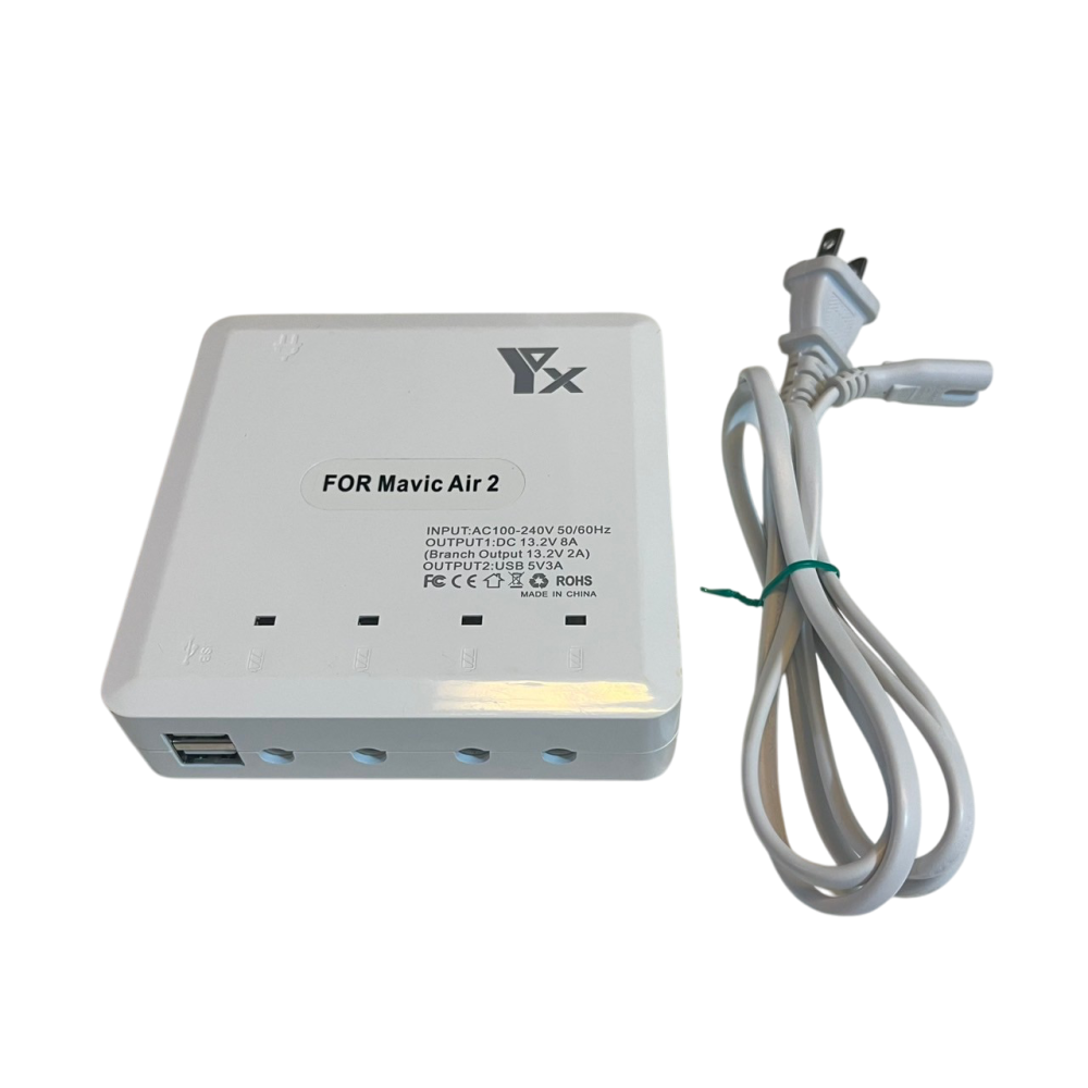 二手,功能正常。結帳需滿 99 才出貨,減少包材與碳排放。輸入:AC 100-240V,輸出:DC 13.2V 8A 分支輸出:13.2V 2A,輸出:USB-A DC 5V 3A,充電時間:4塊電池充滿電約110分鐘,功能:同時快速充電4塊電池,充電器尺寸:11.5 * 11.5 * 3.2cm,1個Mavic Air 2充電器,4 x充電線,1 x電源線,1條車充。