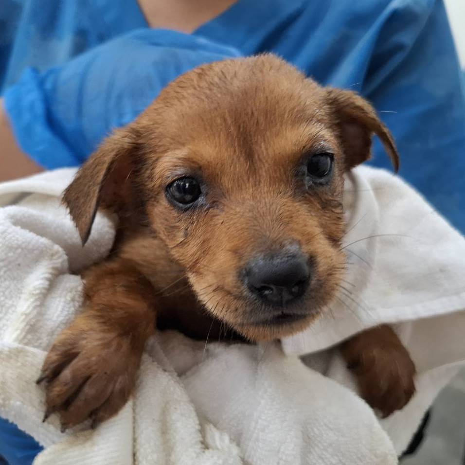 幾天前,奶茶和兄弟姐妹們被發現在巷子深處的廢棄傢俱裡,當時又濕又冷的她不停發抖,卻還是努力舔著志工的手指表示感謝。現在的奶茶已經是個活潑的小公主了,她最喜歡玩你丟我撿的遊戲,還會在聽到「吃飯囉」的時候開心地轉圈圈。每天傍晚,她都會趴在籠子邊,用渴望的眼神看著來來往往的人,好像在問:「今天會是我的幸運日嗎?」