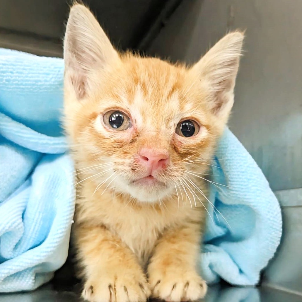 我是長期救援流浪狗、流浪貓的愛心志工,現在在新竹縣動物保護教育園區有一隻橘虎斑小公貓,正眨著琥珀色的大眼睛等待奇蹟。我們叫他「橘醬」,這孩子入所時拖著虛弱的身體對抗鼻氣管炎,連呼吸都像小風箱般費力,卻在見到奶瓶時掙扎著伸出粉紅舌頭——那瞬間我們看見了生命的倔強!