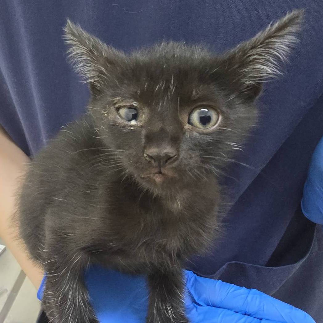 發現黑糖時,他瑟縮在草叢裡,眼睛被分泌物糊住幾乎睜不開,但當志工輕聲呼喚,這勇敢的小傢伙竟摸索著靠過來,用沙啞的嗓子發出微弱的『喵』聲,彷彿在求救。治療中的他像個戴著小小眼罩的小鬥士,儘管視野模糊,卻擋不住他對人的熱情!每次聽到腳步聲,他就會急切地站起來,用小小的爪子輕扒籠門,努力用剩下看得見的眼睛追尋你。只要一打開籠子,他立刻用毛茸茸的頭頂狂蹭你的手,喉嚨發出超大聲滿足的呼嚕,像在說:『我知道你在幫我!』