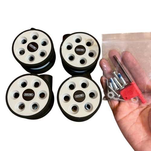 近新,64mm,大輪,功能正常。結帳需滿 99 才出貨,減少包材與碳排放。專為RIMOWA行李箱設計的替換輪子,用於更換磨損或損壞的輪子。包含四個輪子和一個維修工具包,內含螺絲、墊圈和專用扳手,方便自行更換。
