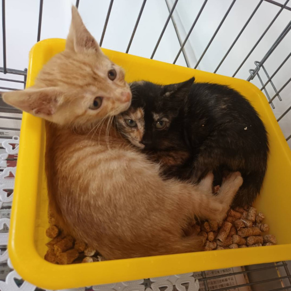 我是長期救援流浪狗、流浪貓的愛心志工,此刻在新北市板橋區公立動物之家,有一對讓人心融化的小貓兄妹,正等待一個永遠的家!他們是在浮洲橋下河濱工地被發現的,當時蜷縮在冰冷的鋼筋旁,身上還沾著工地油漬,卻緊緊依偎著彼此。我們叫妹妹「星砂」(玳瑁色小公主,毛色像夜晚灑落的星光與金沙),哥哥叫「陽光」(活潑的橘虎斑,像個溫暖小太陽)。