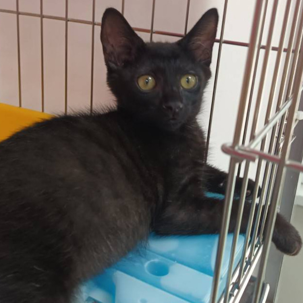 我是長期救援流浪狗、流浪貓的愛心志工。在新北市板橋區公立動物之家,有個特別的小傢伙正等待他的奇蹟——我們叫他「黑糖」。黑糖是在山區馬路旁樹林裡被發現的,小小身軀蜷縮著,不知是誰將他遺棄在荒野。山裡沒有食物,他餓得只剩一把骨頭,驚恐的大眼睛寫滿無助。但令人心疼的是,即使經歷這些,黑糖依然選擇相信人類!一靠近,他就用微弱的力氣蹭籠子,發出細細的呼嚕聲,彷彿在說:「你終於來接我了嗎?」
