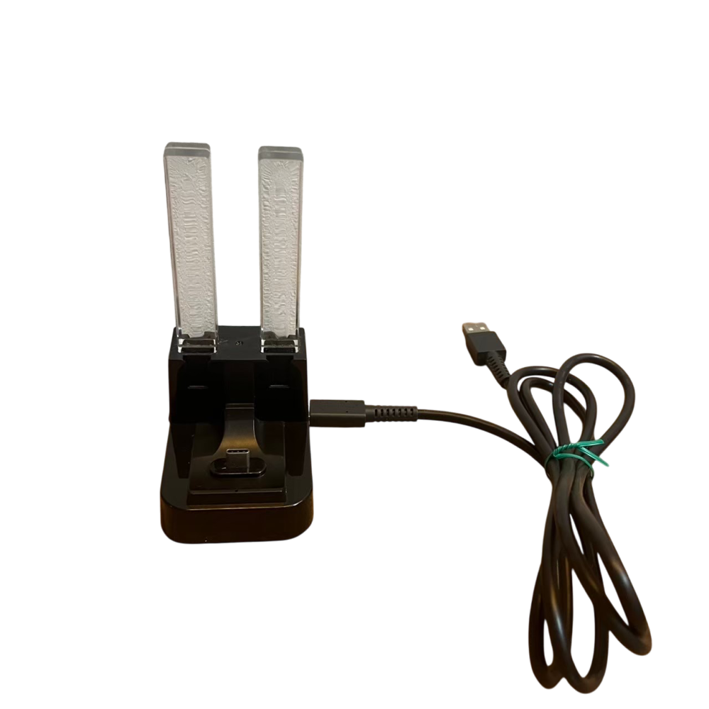 二手,功能正常。結帳需滿 99 才出貨,減少包材與碳排放。用於為Nintendo Switch的Joy-Con控制器和Pro控制器充電。 功能與設計:此充電座專為Nintendo Switch設計,具備滑入式設計,方便Joy-Cons控制器插入充電,同時也配備USB-C轉接器,可為Pro控制器充電。 充電指示:充電座設有獨立的LED指示燈,充電時會亮紅燈,充滿電後則轉為綠燈,方便用戶了解充電狀態。 兼容性:除了Joy-Con控制器和Pro控制器,此充電座也能為無線版NES Nintendo Entertainment System控制器充電。 電源規格:輸入為Type-C 5V DC,輸出為5V 250mA (4個插槽) 及5V 500mA (2個插槽)。
