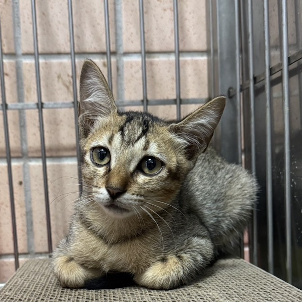 幾天前,Milo和同胎兄妹被發現蜷縮在紙箱裡,他是其中唯一披著美麗虎斑紋的小勇士。當其他小貓都陸續找到家後,Milo總會用小小的肉墊輕拍籠門,彷彿在問:「下一個會輪到我嗎?」