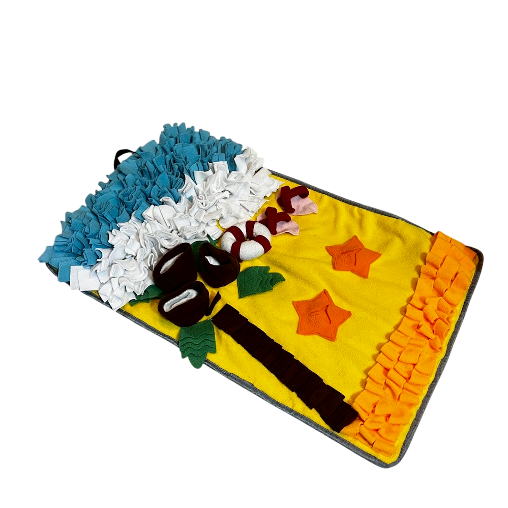 這款嗅探墊專為刺激狗狗的嗅覺和注意力而設計,能為它們帶來充滿樂趣且富有啟發性的活動。只要將它們最愛的零食藏在墊子裡,就能讓它們在滿足本能的探索和覓食需求的同時,保持專注。這項活動不僅適合特定犬種,還能促進狗狗的智力發展,並幫助它們釋放能量。墊子表面分佈著許多隱藏點,讓餵食或獎勵時間變成真正的益智遊戲。防滑底座確保墊子穩固,即使狗狗興奮地玩耍也不會晃動。這款嗅探墊實用便攜,只需幾秒鐘即可捲起,方便攜帶,無論是旅行、去朋友家還是度假,都能幫助您隨時隨地保持愛犬的日常活動。