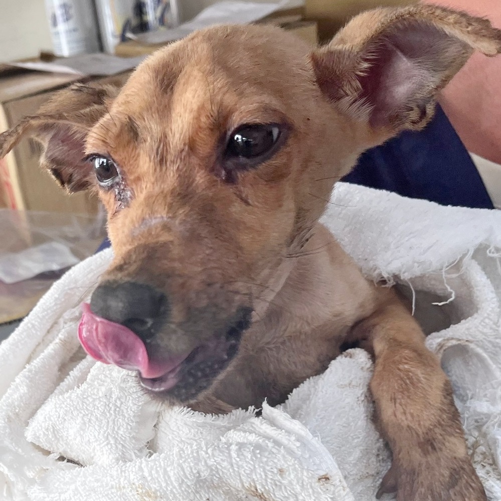 當時牠瑟縮在路邊,眼神滿是驚慌,卻仍對著靠近的民眾搖尾巴。救援後發現,牠身上沒有晶片,不確定是否結紮,乖巧得令人心酸——極可能是被原本的主人「放養」後遺棄,或是走失後再也找不到回家的路。