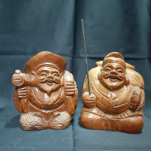 〔那那勇選品〕大黑天 惠比壽 木雕置物-日本製老件