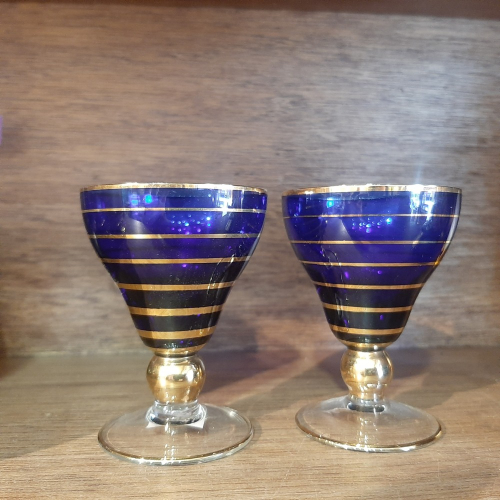 〔那那勇選品〕歐洲老件 藍琉璃描金酒杯 - 歐洲製老件