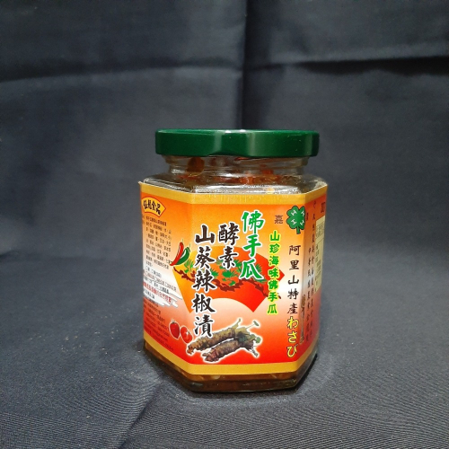 原料:新鮮辣椒、海鹽、水、糖、佛手瓜、山葵、海帶、珊瑚草、豆油、山椒油、薑、大豆油、香油、草本酵素萃取液(甜菊、甘草、紅棗、桂枝、枸杞、羅漢果、七葉膽)