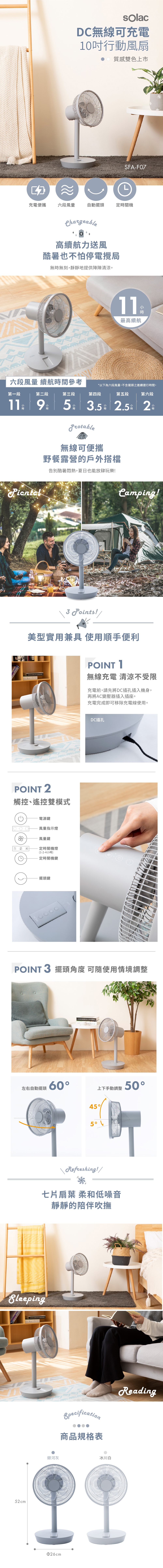 Solac 10吋DC無線可充電行動風扇 SFT-F07