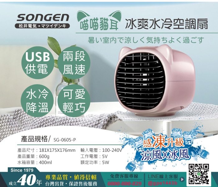 松井 喵喵貓耳冰爽水冷空調扇 綠/粉 SG-0605