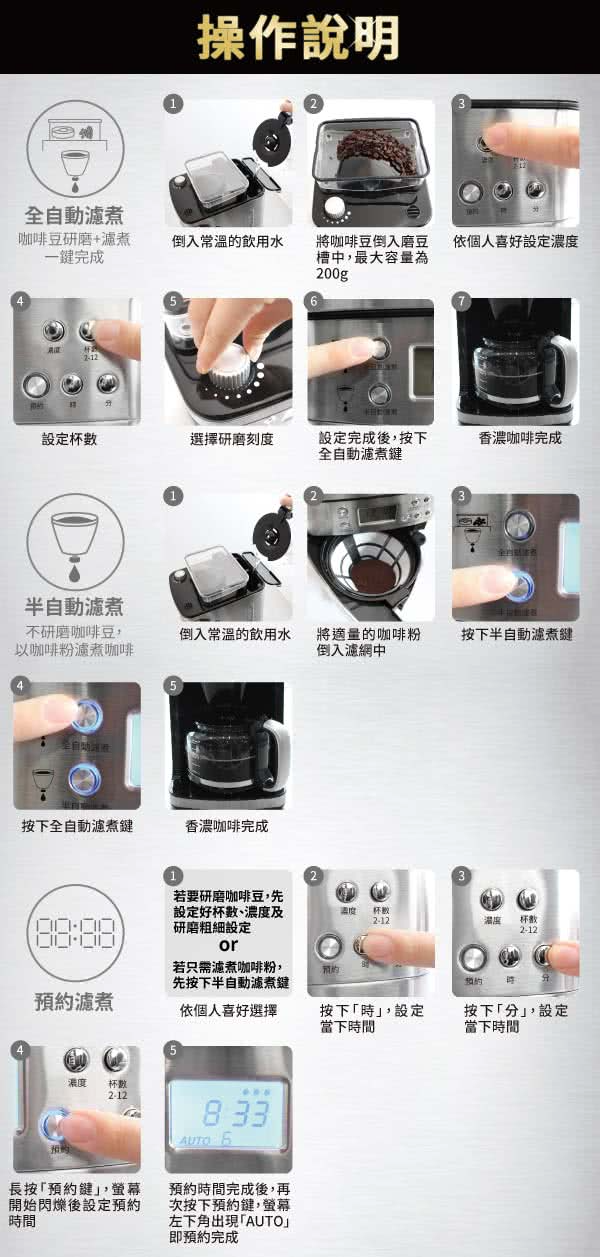◆ 24 小時預約計時 / 濾煮完成自動轉保溫