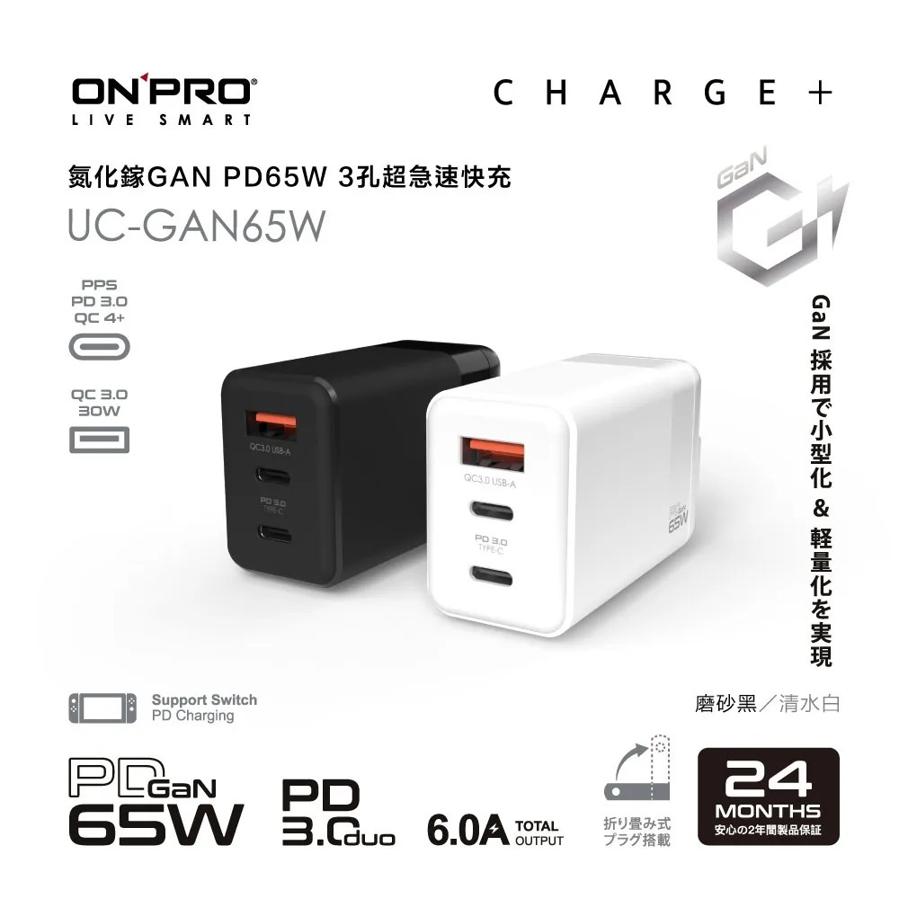 ONPRO UC-GAN65W 氮化鎵GaN 65W 3孔PD快充充電器