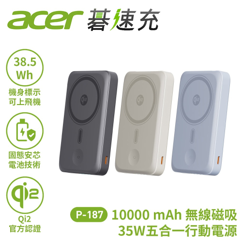 ACER 宏碁 Gadget 碁速充 10000mAh 35W Qi2五合一固態行動電源 P-187