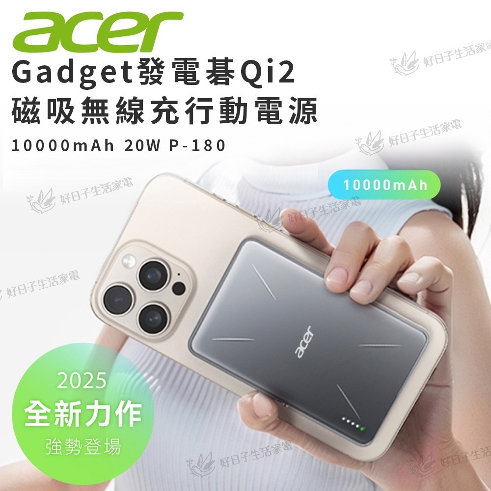 ACER 宏碁 Gadget 發電碁 10000mAh 20W Qi2磁吸無線充行動電源 P-180