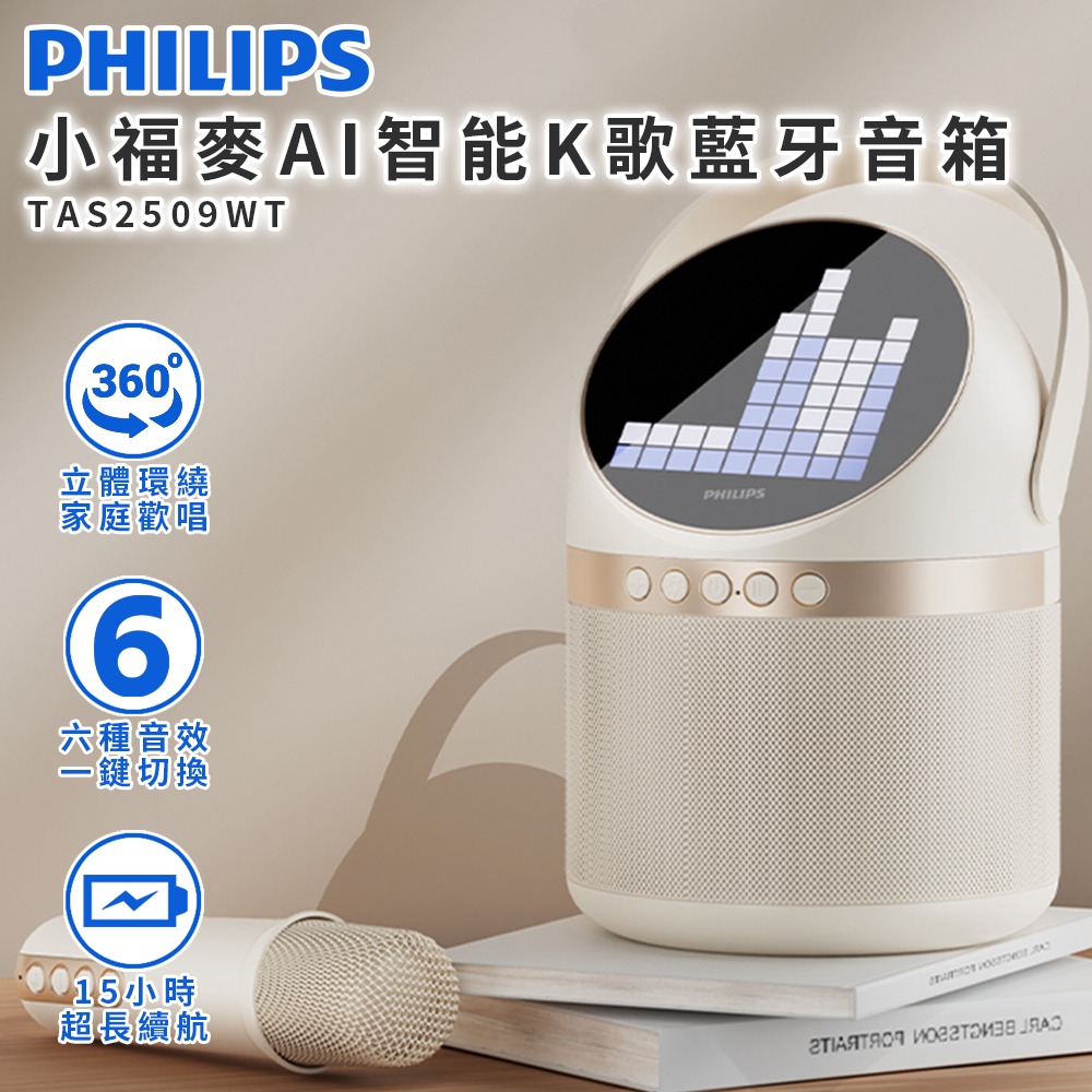 PHILIPS 飛利浦 HOME系列 小福麥AI智能K歌藍牙音箱 TAS2509WT